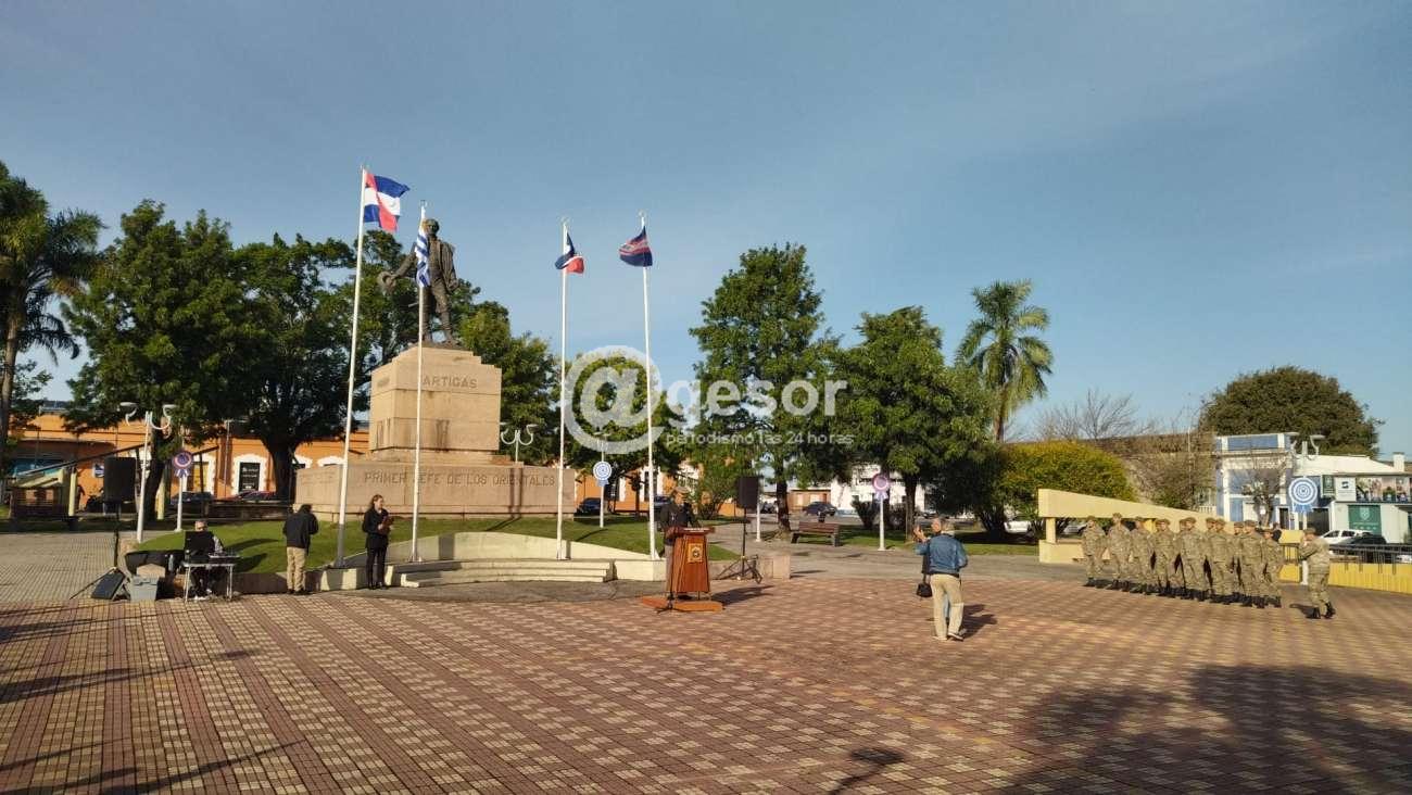 Tras sus palabras, se realizó la colocación de ofrenda floral al pie del monumento el Gral. José G. Artigas, pasando luego a la parte artística.