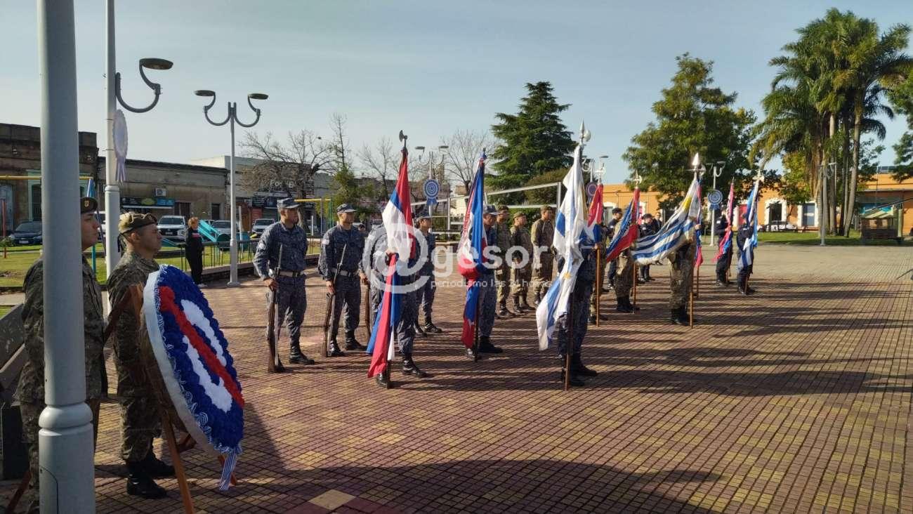 En plaza Artigas de Mercedes se desarrolló el acto central por el 214 aniversario de la Batalla de las Piedras. Autoridades de la Intendencia de Soriano, los diputados María Fajardo y Aníbal Méndez, ediles y autoridades militares, policiales y de Prefectura participaron de este acto en el cual también se celebra el "Día del Ejército".