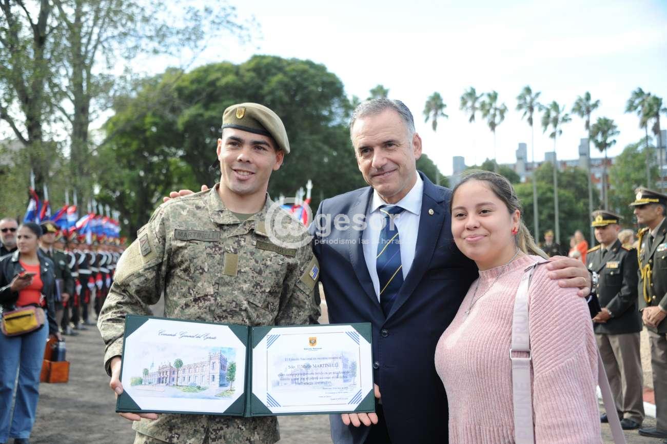 Durante su participación en el acto de conmemoración del Día del Ejército Nacional, el presidente Orsi homenajeó a los soldados que se destacaron por sus actuaciones en diferentes circunstancias durante el transcurso de 2024.