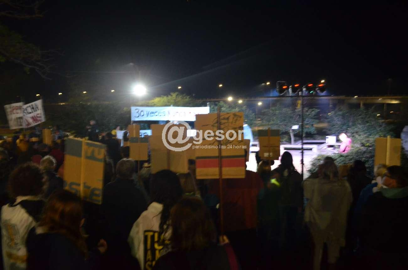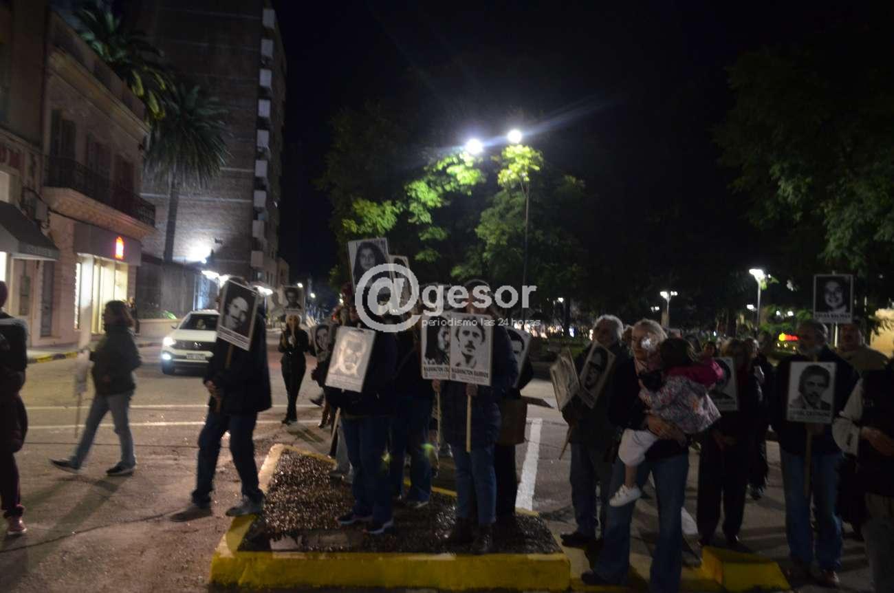 Veronica Mirandette y Huamani Millán en nombre de la Comisión Memoria, Justicia y contra la Impunidad de Soriano, tuvieron a su cargo la lectura de la proclama, una vez culminada la Marcha del Silencio. En el Espacio Memoria, que recuerda a los 10 detenidos desaparecidos sorianenses durante la pasada dictadura, los mercedarios se sumaron a este reclamo nacional. “Hoy nos encontramos una vez más en las calles de todo el país y en el exterior, en el marco de una nueva Marcha del Silencio. Nos rodea un silencio absoluto, pero también el cariño y tenacidad de quienes, hace más de 30 años, venimos exigiendo respuestas. Es el pueblo una vez más, el que sostiene a nuestros familiares detenidos-desaparecidos. Nuevamente nos encontramos marchando bajo la consigna 30 veces Nunca Más: Sepan Cumplir. ¿Dónde Están?