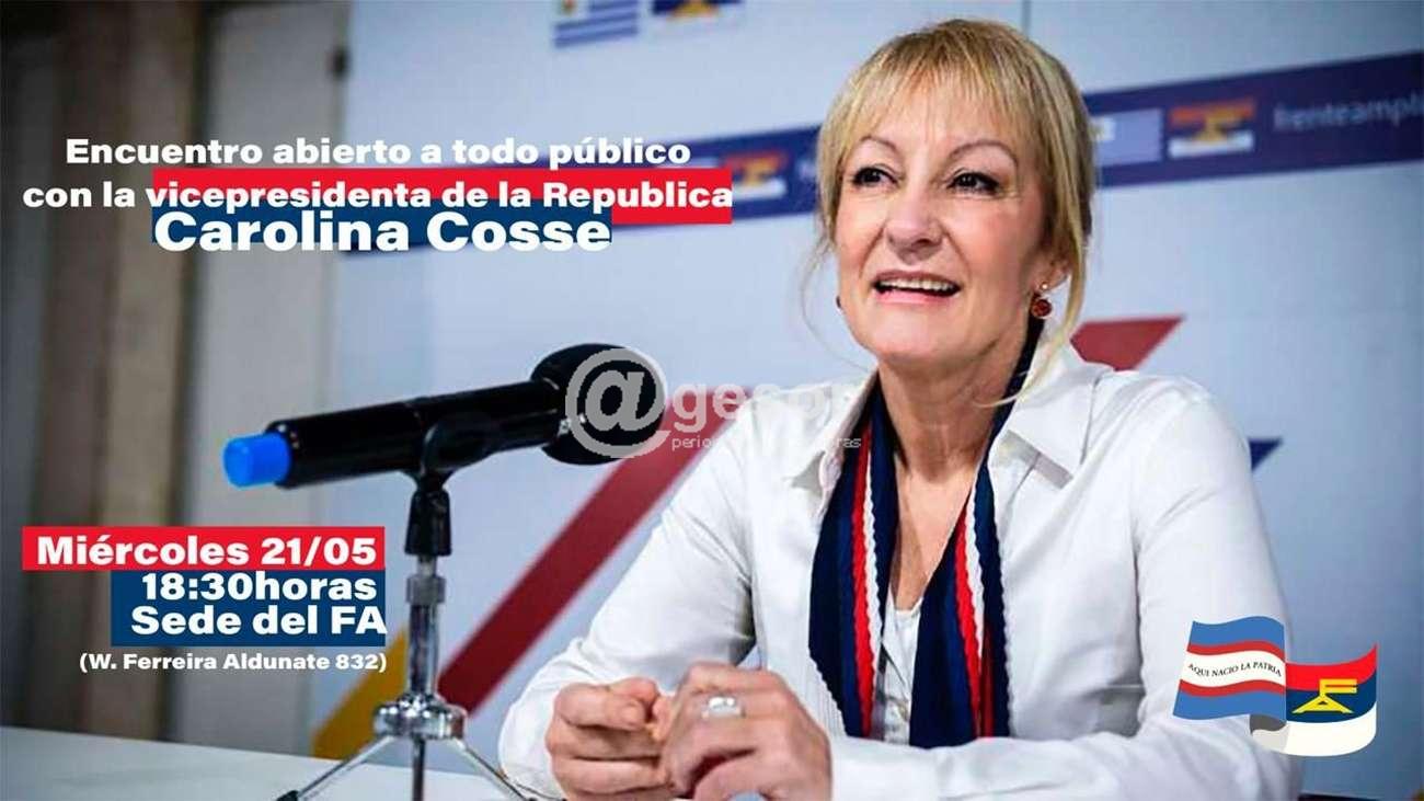 Este miércoles la vicepresidenta de la República, Carolina Cosse estará cumpliendo con una serie de actividades en Soriano. Según se ha informado la actividad de Carolina Cosse culminará con un encuentro abierto con militantes frenteamplistas, en la sede central del Frente Amplio en Mercedes, a las 18,30 horas.