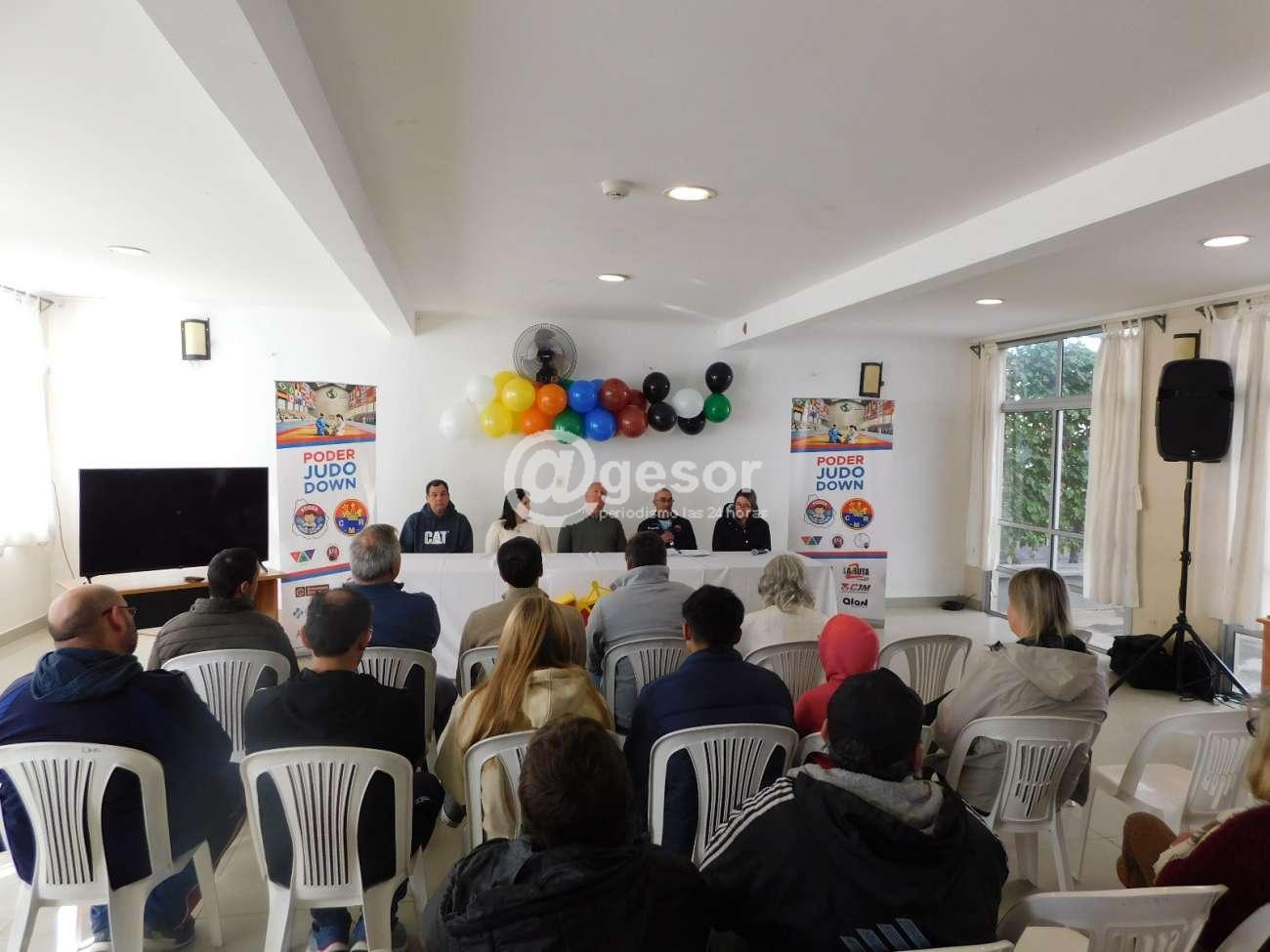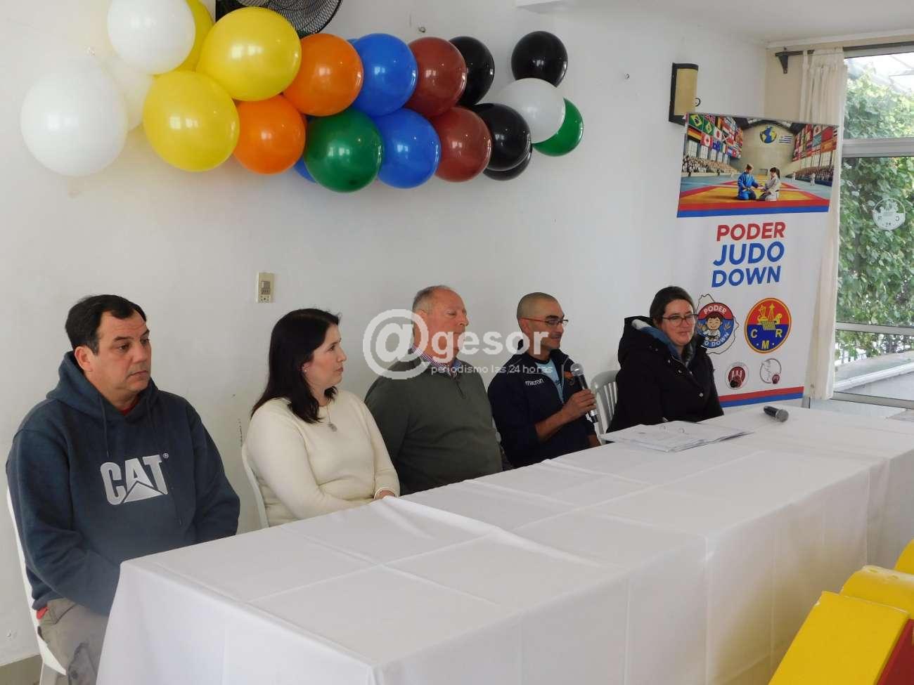 En el salón Rincón Zamora se llevó a cabo el lanzamiento del programa "Poder Judo Down" a desarrollarse en el Club de Remeros Mercedes, liderado por el docente Juan Fernández, quien en la presentación estuvo acompañado por el Presidente de la institución Gustavo Ferreira, los profesionales Dra. Mariana Sáez y Psic. Sebastián Cardozo, así como también la docente, exDirectora de la Escuela 104, Verónica