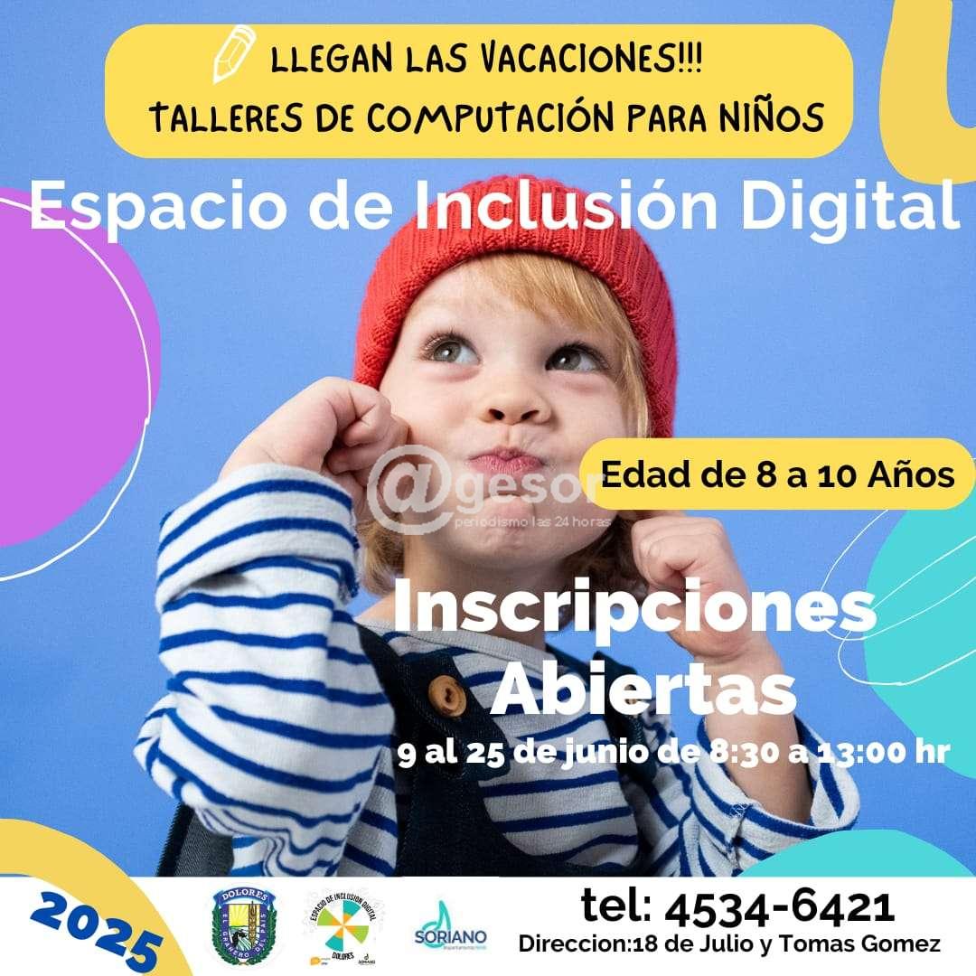 Están abiertas las inscripciones del 9 al 25 de junio, de 8.30 a 13.00 horas en el Espacio de Inclusión Digital del Municipio de Dolores, para los talleres de computación para niños de 8 a 10 años, en las vacaciones de invierno.
