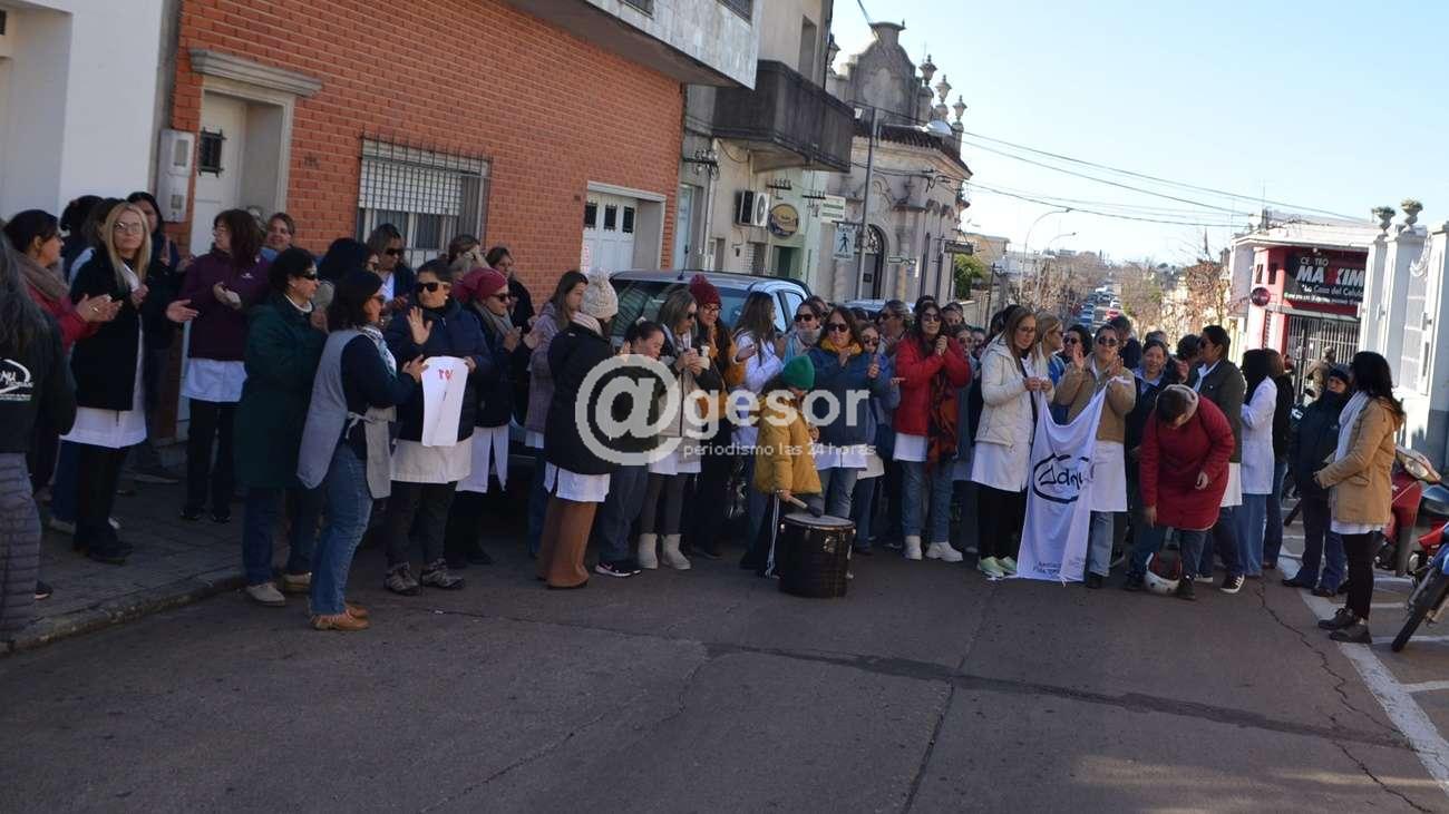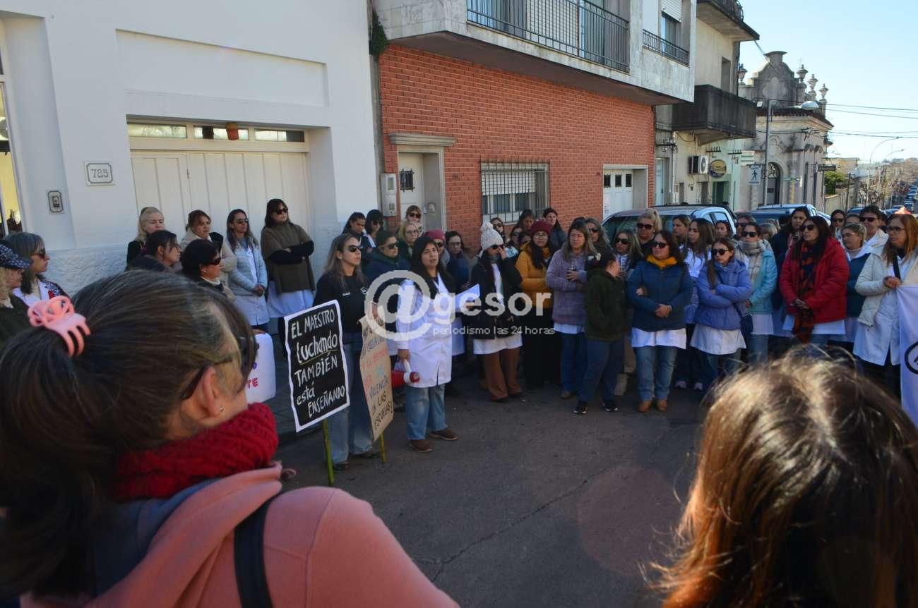 Maestros se Soriano nucleados en ADEMU realizaron un paro de 24 horas y se manifestaron frente a la Inspección de Escuelas, en Mercedes exponiendo la situación que atraviesan. Con carteles que expresaban “Por la dignidad docente”, “No a la imposición, sí al diálogo” un grupo de maestras mercedarias se congregaron frente a las oficinas de la Inspección Departamental de Escuelas para expresar sus críticas las situaciones de violencia que han venido sufriendo en diversas escuelas del departamento, en situaciones que según expresaron generan frustración y enojo.