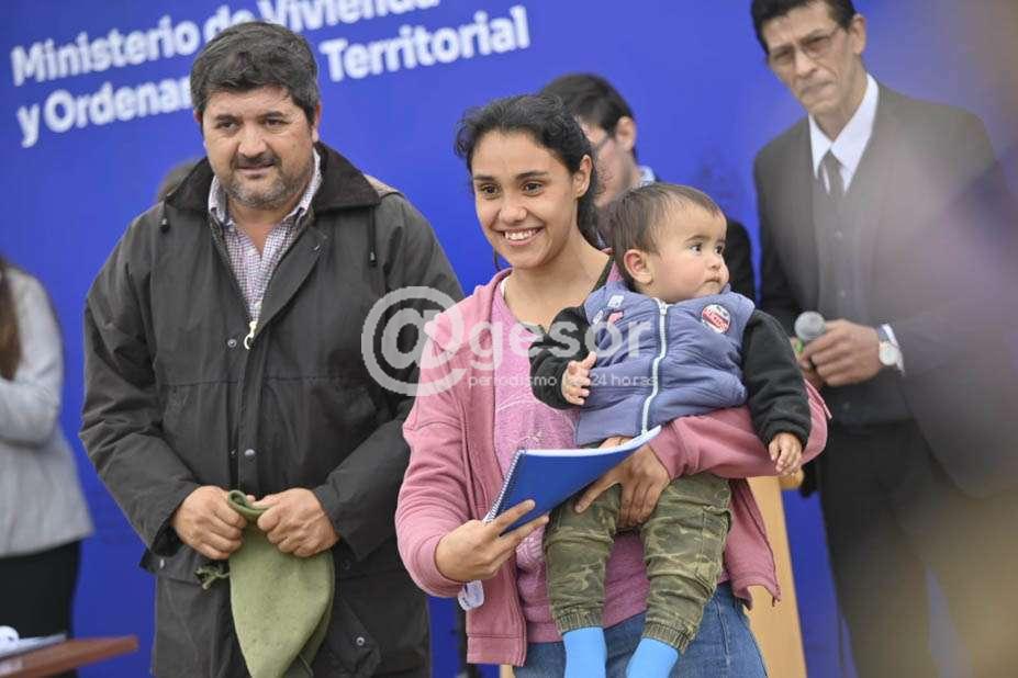 El Ministerio de Vivienda y Ordenamiento Territorial entregó 27 viviendas de realojo para familias que viven en asentamientos y situación de informalidad en la ciudad de Young.