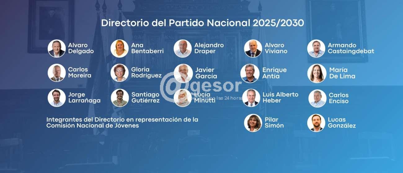 Luego del escrutinio de los votos de los convencionales presentes, la presidencia del Directorio del Partido Nacional será ejercida por el Dr. Alvaro Delgado y también integrarán el Directorio Nacionalista: Carlos Moreira, Jorge Larrañaga, Ana Bentaberri, Gloria Rodríguez, Santiago Gutiérrez, Alejandro Draper, Javier García, Lucía Minutti, Alvaro Viviano, Enrique Antía, Luis Alberto Heber, Armando Castaingdebat, María De Lima, Carlos Enciso y en representación de la Comisión Nacional de Jóvenes estarán Pilar Simón y Lucas González.