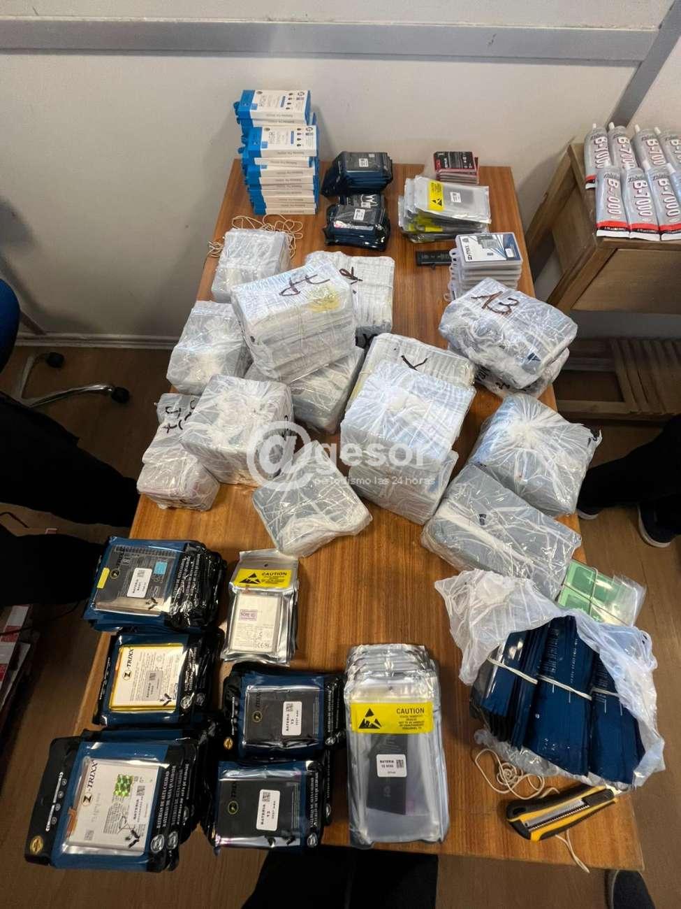Al realizar el recuento de la mercadería, se constató un total de 190 adhesivos para celulares y 633 baterías de distintos tipos de celulares, por un monto cercano a los 11.000 (once mil) dólares.