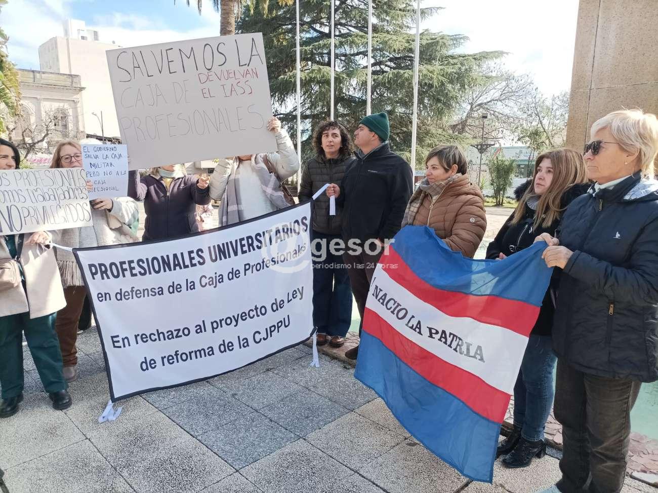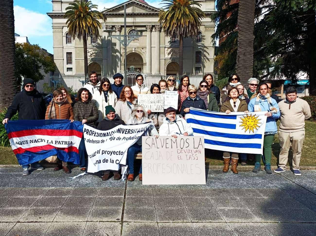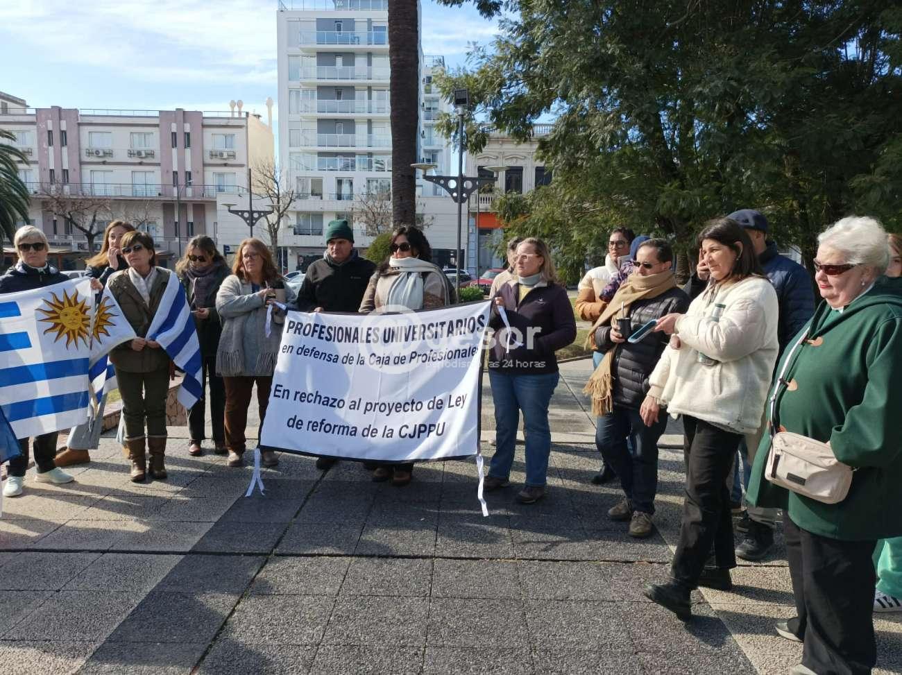 El integrante de un grupo de profesionales de Soriano, odontólogo Dr. Conrado Saizar, fue el encargado de dar a conocer en plaza Independencia de Mercedes, la proclama que se leería por parte de quienes se harían presentes en el Parlamento durante la votación de la Ley de salvataje a la Caja de Jubilaciones y Pensiones de Profesionales Universitarios.