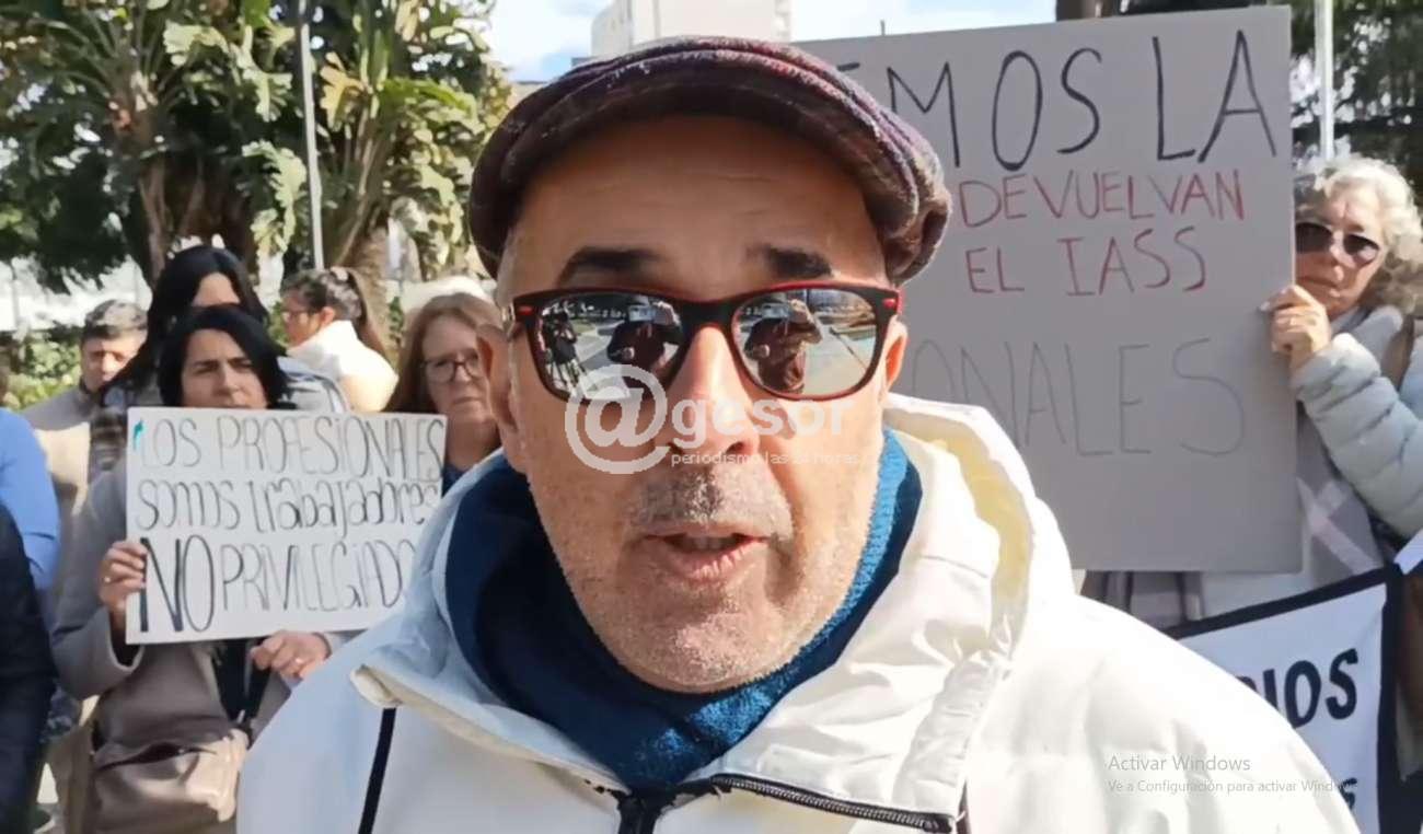 "Nosotros queremos apoyar la defensa de la Caja. Al no poder estar en el Palacio, como se iba a convocar hoy, queremos de acá manifestar nuestro apoyo a los compañeros que están allá y en defensa de la Caja de Profesionales".