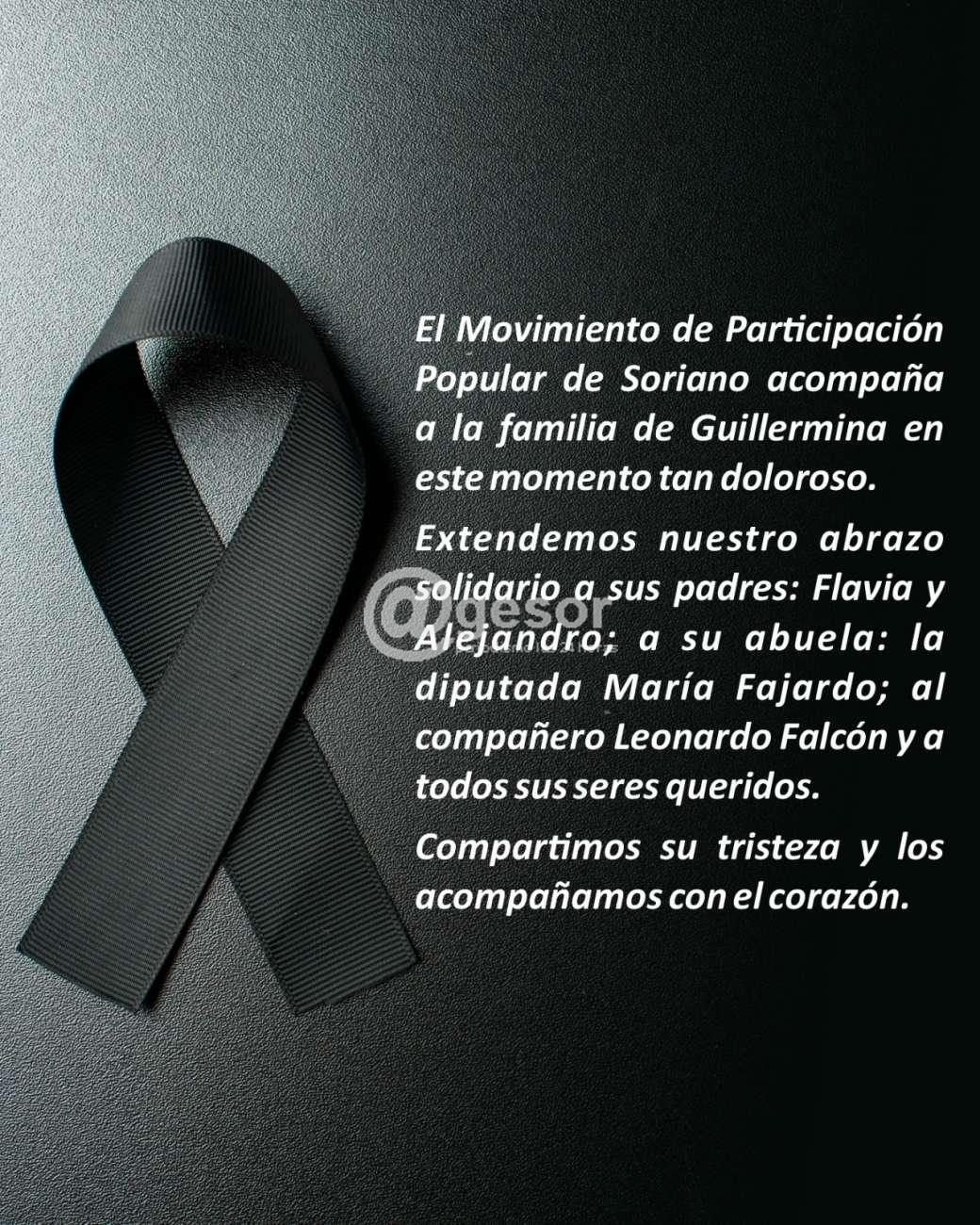 El Movimiento de Participación Popular de Soriano acompaña a la familia de Guillermina en este momento tan doloroso.