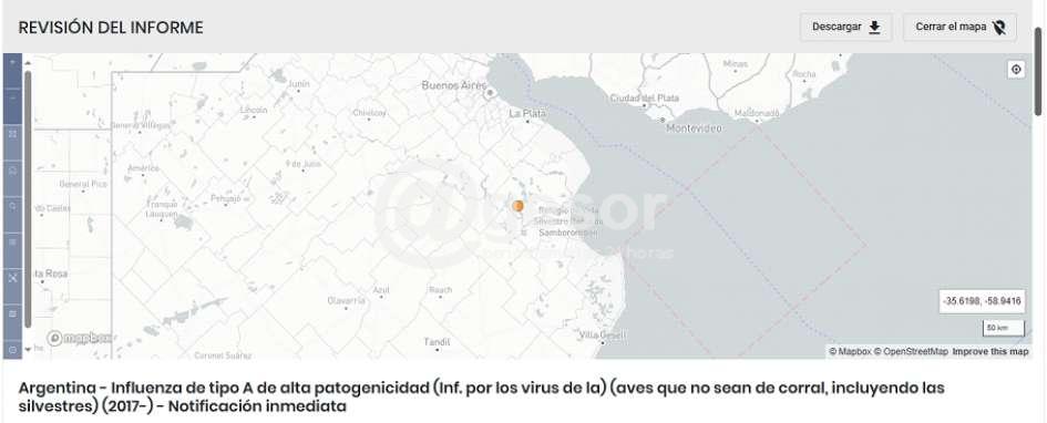 El evento fue reportado el 14 de julio por la presencia de signos clínicos compatibles con la enfermedad: depresión, cianosis en la cresta y alta mortalidad. Las muestras tomadas fueron analizadas por el laboratorio oficial del SENASA y confirmadas como positivas el 15 de julio. Las especies afectadas incluían gallinas, pavos reales, faisanes y gallinas de Guinea. Se presume que el origen del brote está vinculado al contacto con aves silvestres, ya que el establecimiento se encuentra junto a cuerpos de agua.