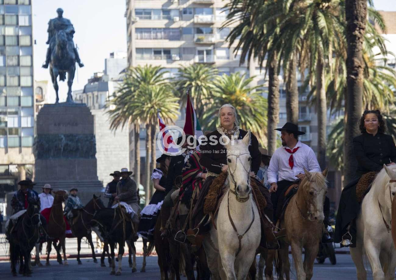 El desfile fue encabezado por los abanderados del pabellón nacional, la bandera de Artigas, la de los Treinta y Tres Orientales la y de la Unión de Aparcerías y Sociedades Tradicionalistas del Uruguay (Uastu).