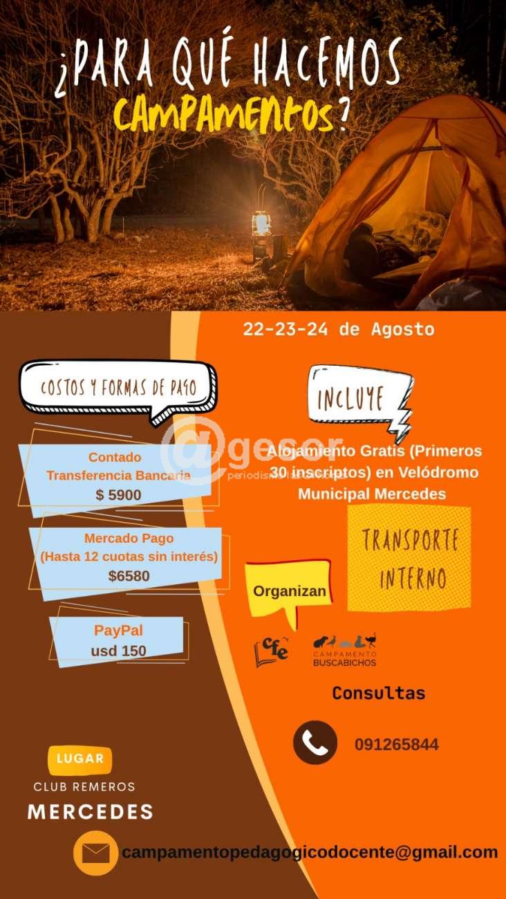 Campamento Pedagógico Docente durante 22, 23 y 24 de agosto en Club Remeros Mercedes