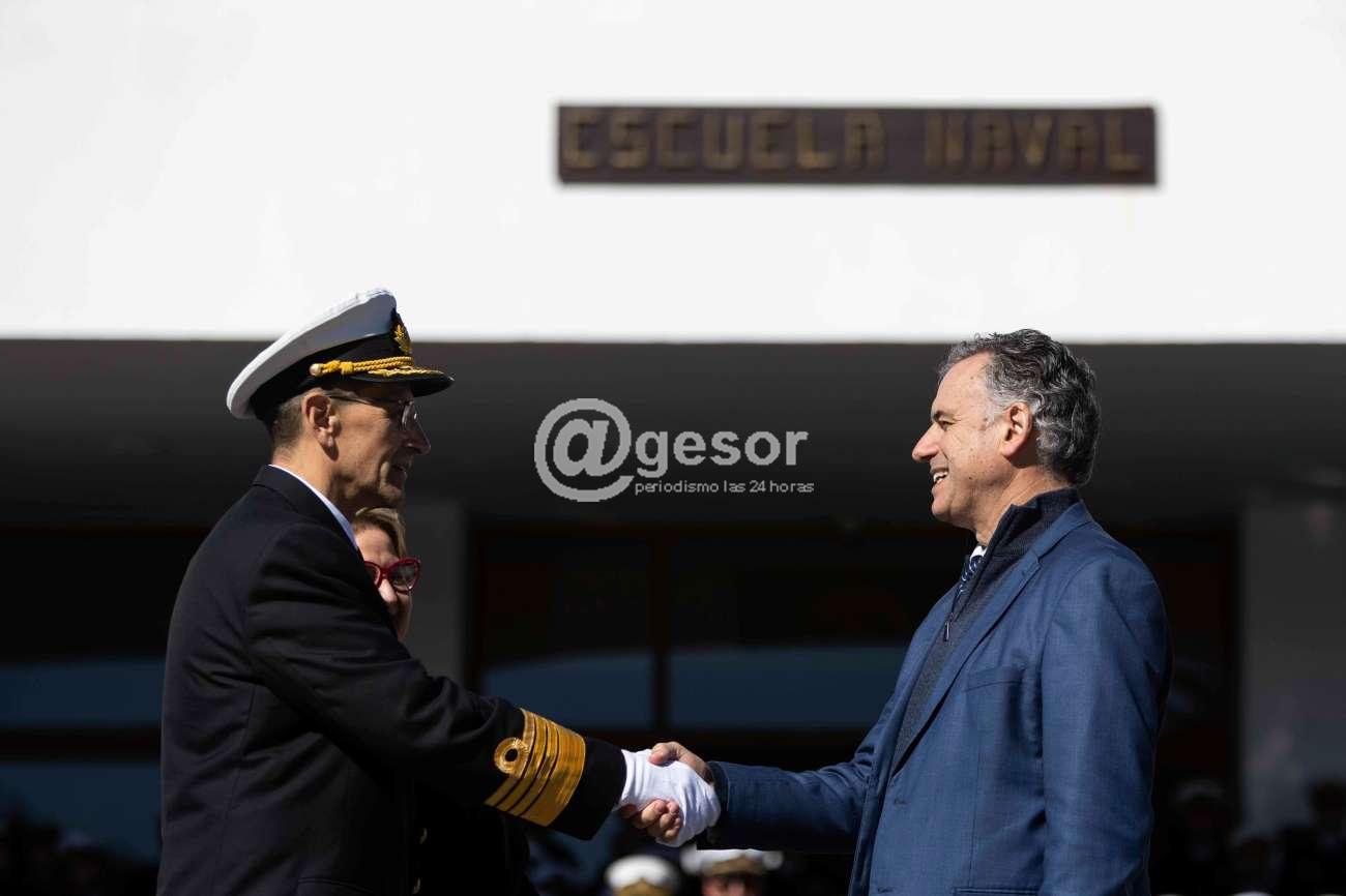 La jornada, realizada en la Escuela Naval, prosiguió con un toque de fuego y salva de 19 cañonazos en honor al comandante en jefe entrante, el izado de la insignia y la firma de un acta.