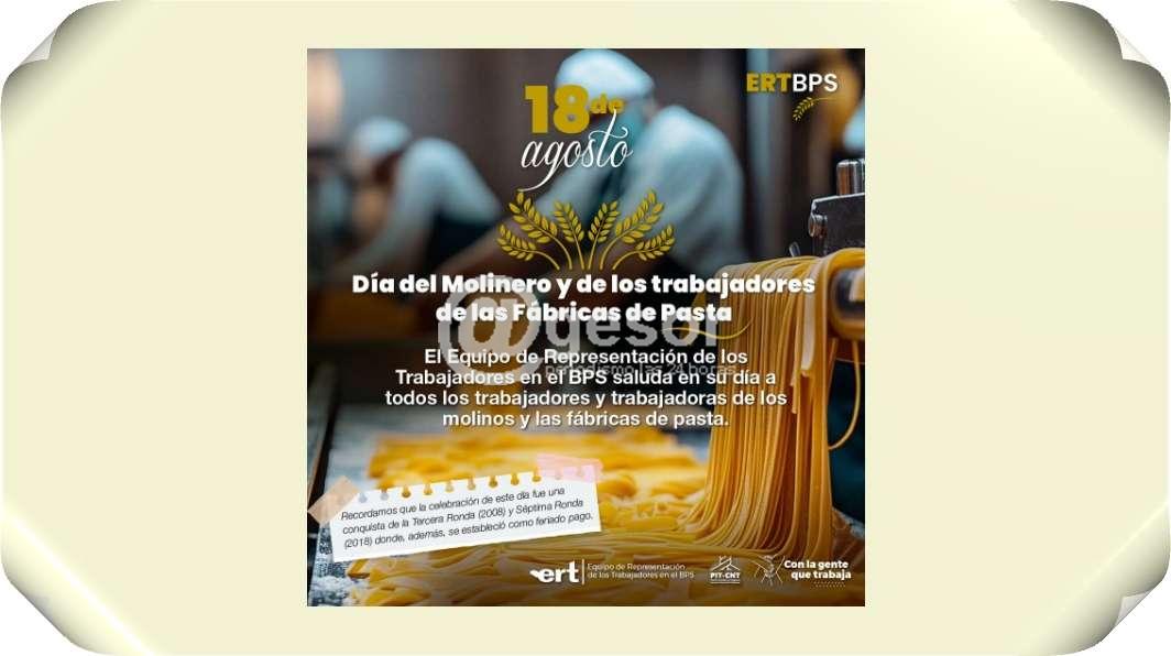 El Equipo de Representación de los Trabajadores en el BPS saluda en su día a todos lo trabajadores y trabajadoras de los molinos y de las fábricas de pasta, renovando el compromiso con la defensa de la seguridad social universal, justa y humana.