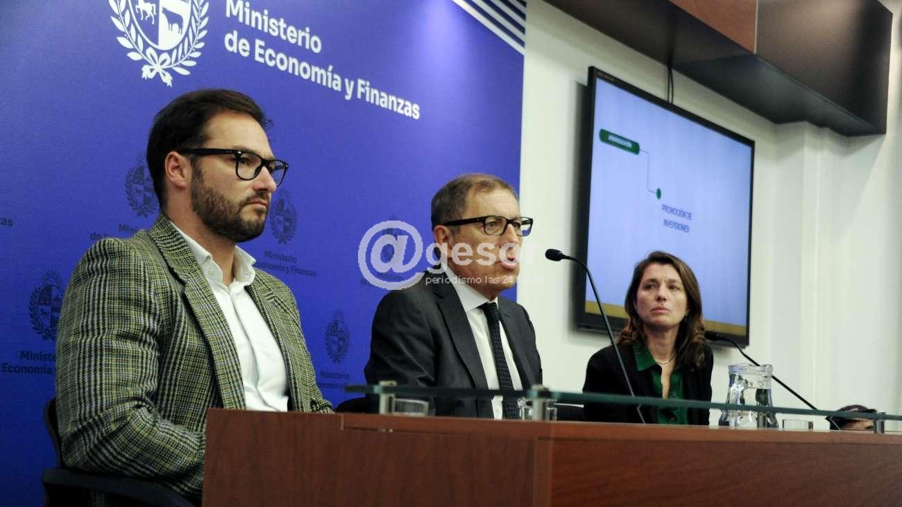 La conferencia de prensa estuvo liderada por el ministro Gabriel Oddone, la directora nacional de Zonas Francas, Isabella Antonaccio, y el presidente de la Agencia Nacional de Desarrollo (ANDE), Juan Ignacio Dorrego.