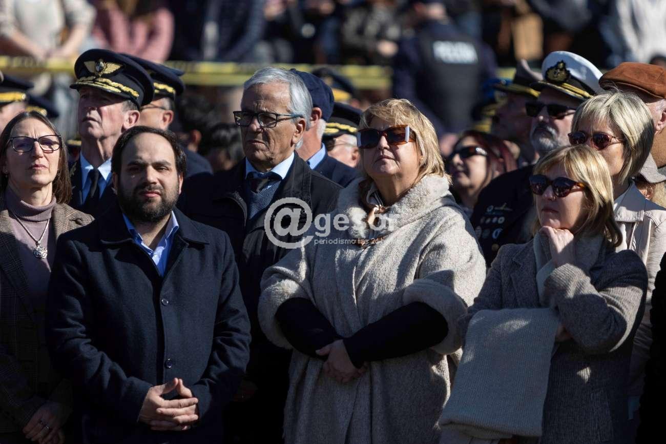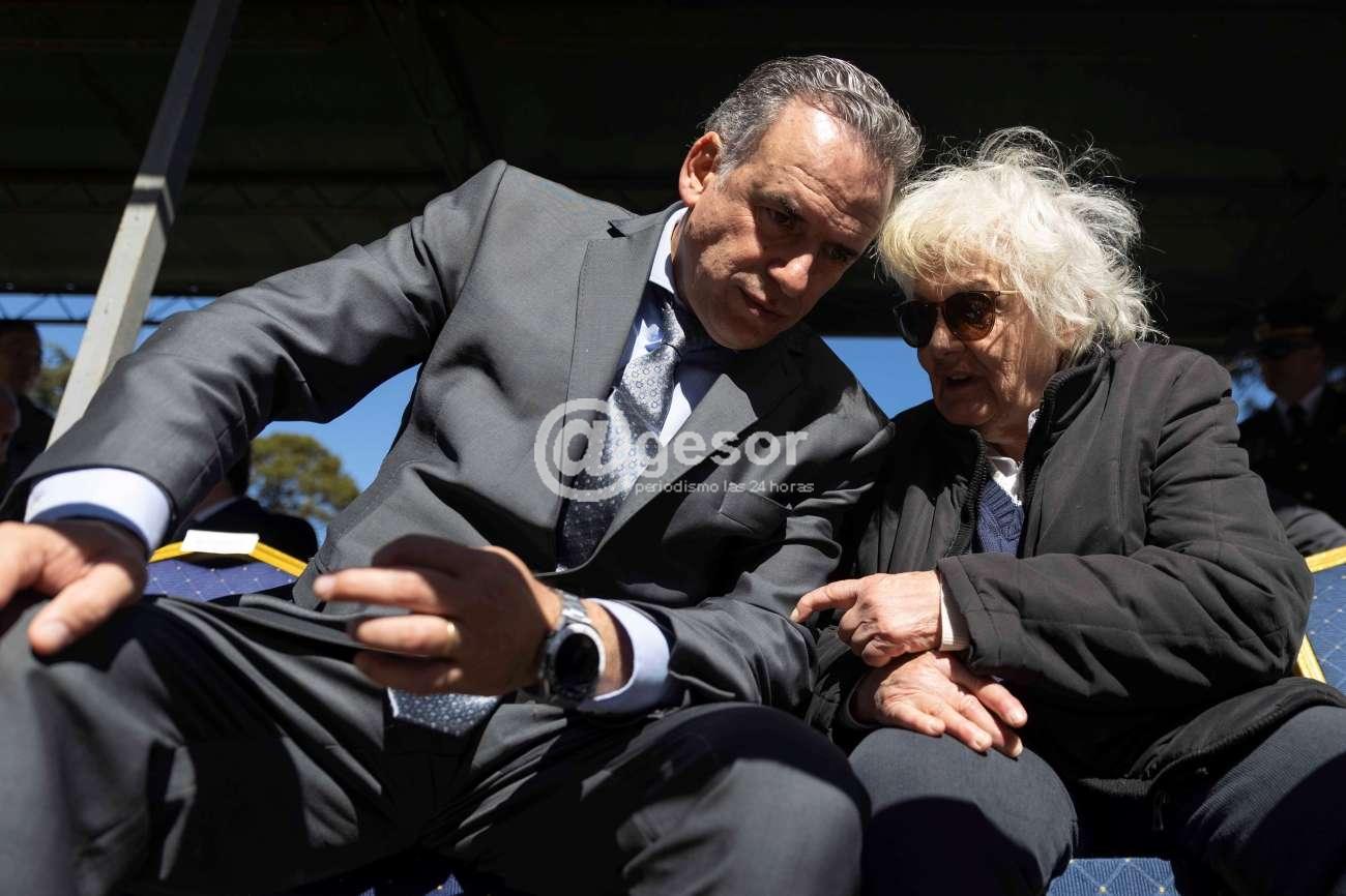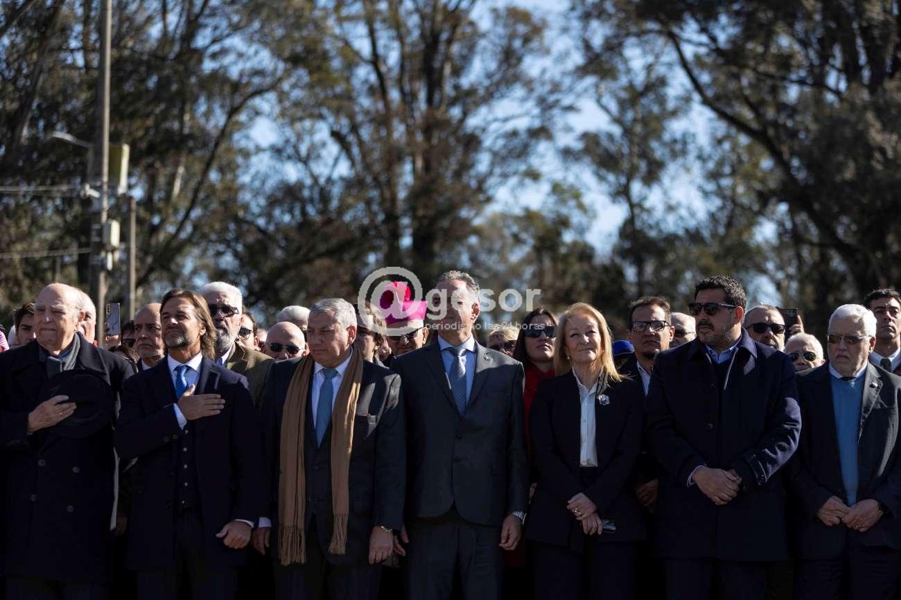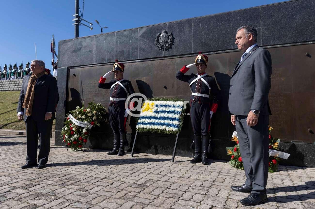 Una vez finalizada la oratoria protocolar, el presidente Orsi y el intendente Enciso descubrieron una placa conmemorativa por los 200 años y depositaron una ofrenda floral al pie de la placa de la ley fundamental de 1825.