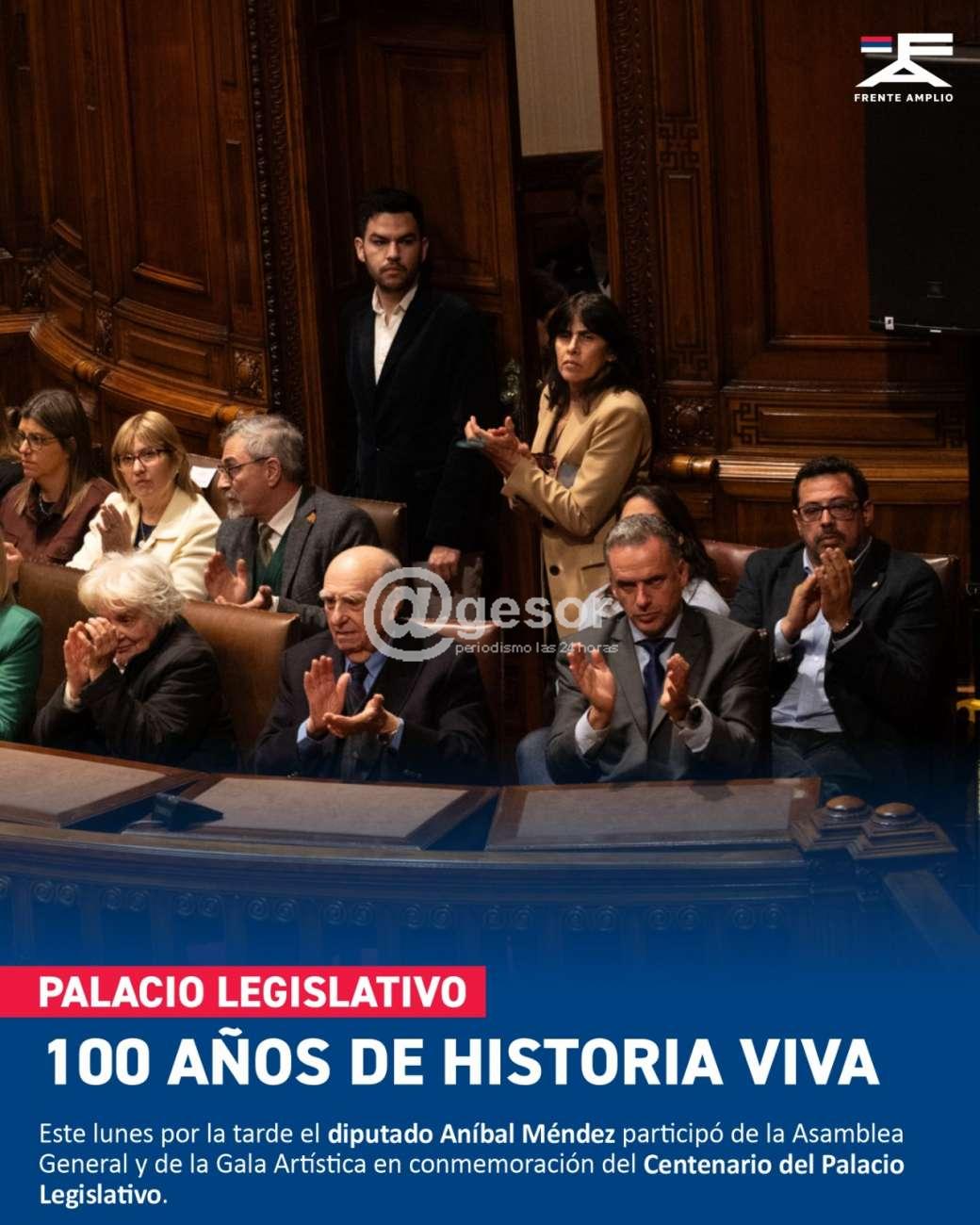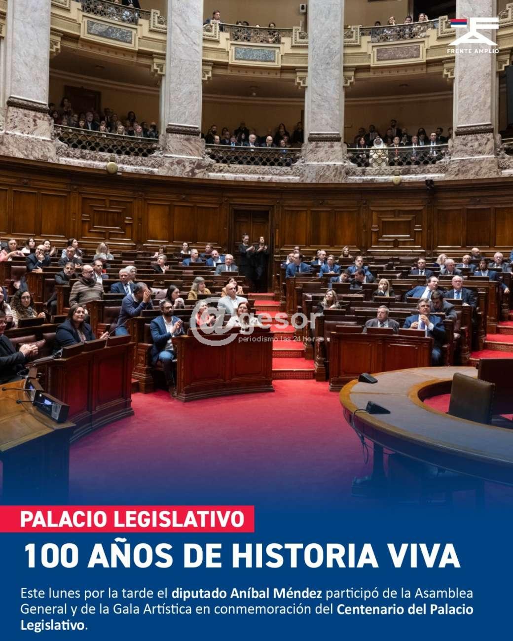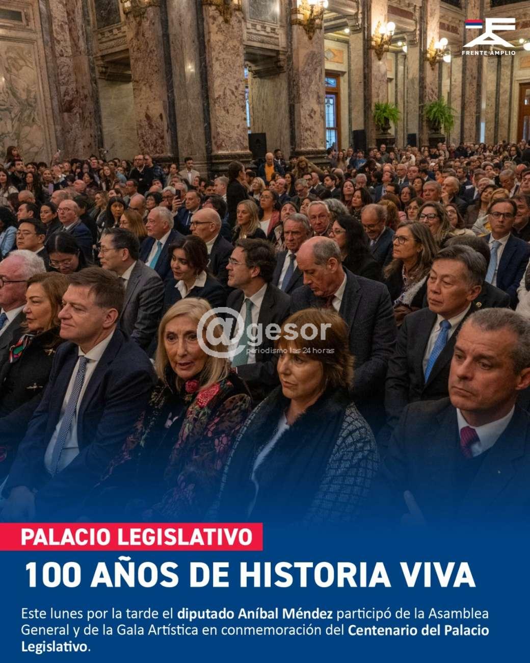 Este lunes por la tarde el diputado Aníbal Méndez participó de la Asamblea General y de la Gala Artística en conmemoración del Centenario del Palacio Legislativo.