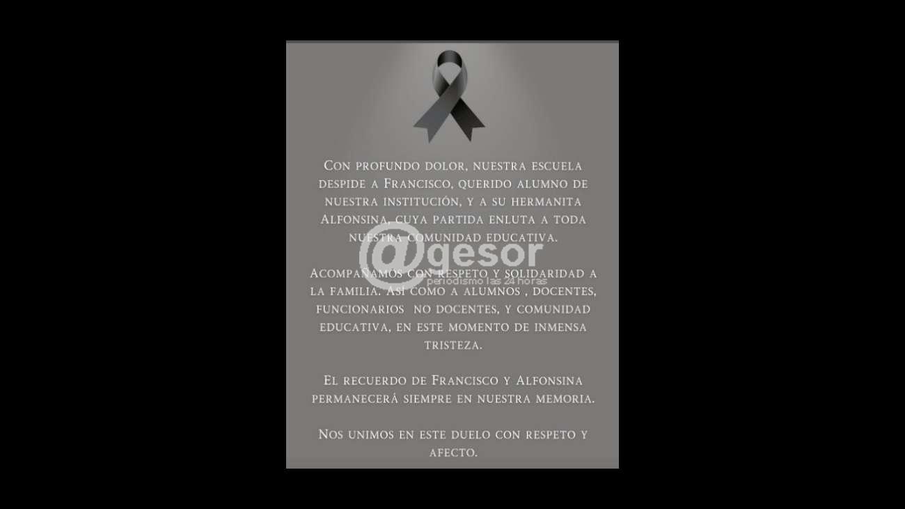 Acompañamos con respeto y solidaridad a la familia. Así como a alumnos, docentes, funcionarios no docentes, y comunidad educativa, en este momento de inmensa tristeza.