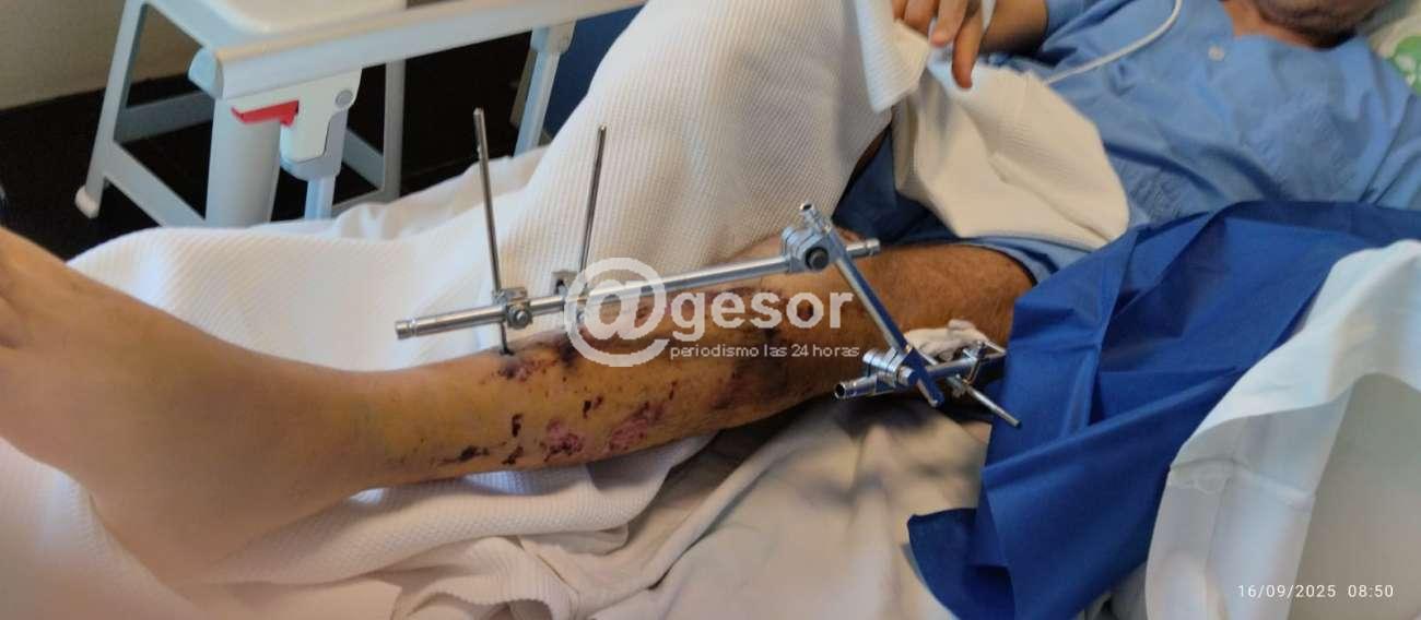 Inspector de Tránsito continúa internado en Sanatorio del BSE, a la doble fractura de tibia se le sumó fractura en rótula, además de la mano, este martes tras Ateneo se le dará la fecha y hora de la intervención quirúrgica