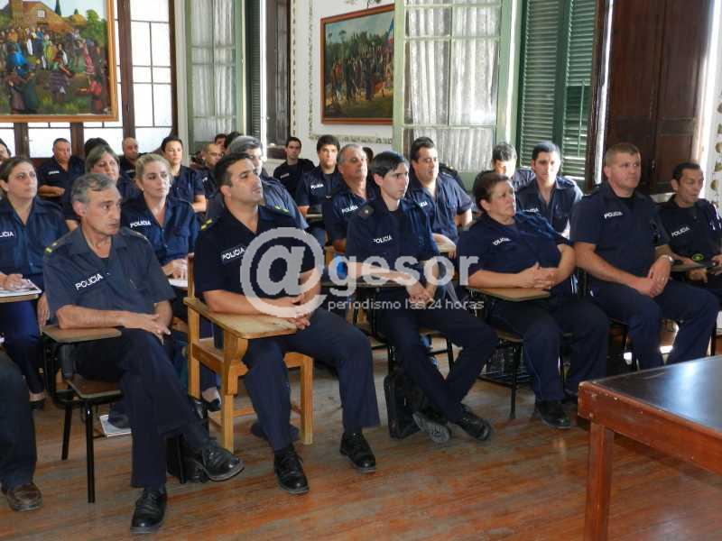 En ocasión del cierre de cursos sobre Violencia de Género y Doméstica que se realizó este jueves en el salón de actos de la Jefatura de Policía de Soriano, en el marco de convenio entre el Ministerio del Interior y la Universidad de la República, fueron invitados a estar en la mesa que presidió la actividad, el Sub Jefe de Policía Crio. Insp. Ricardo López Leyes, las integrantes de las ONGs Horizonte y Nuevos Caminos Ana González y Alba Aguilar, la Coordinadora del SIPIAV Carolina Silva, estuvo presente también el secretario personal del Intendente Besozzi, Gonzalo Castillo en representación de la Directora de Acción Social y Familia de la comuna, y el Director Departamental de INAU Soriano, Horacio Perazza.