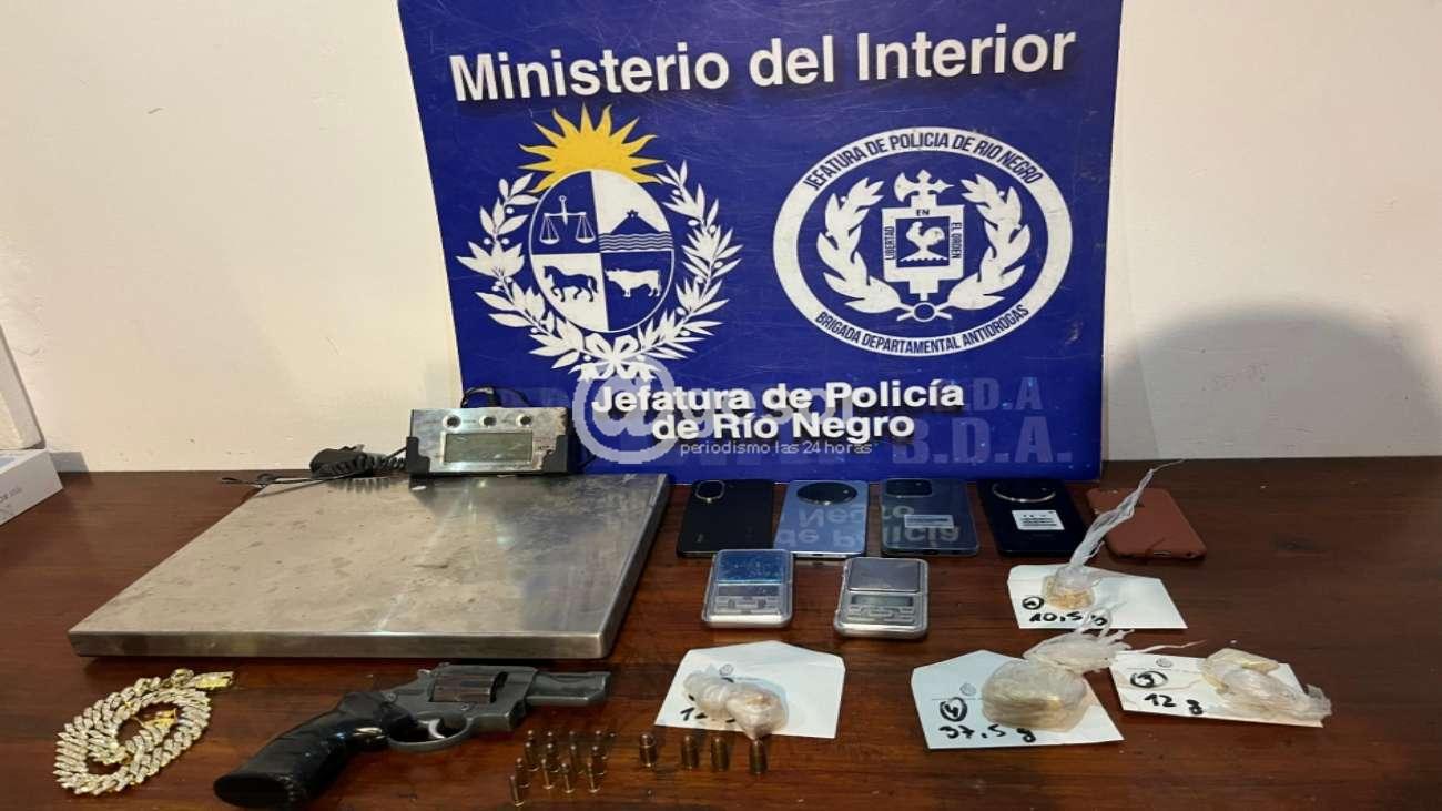 Tras el operativo, se realizó la incautación de una balanza, varios teléfonos celulares, sustancias estupefacientes, un arma de fuego y municiones.