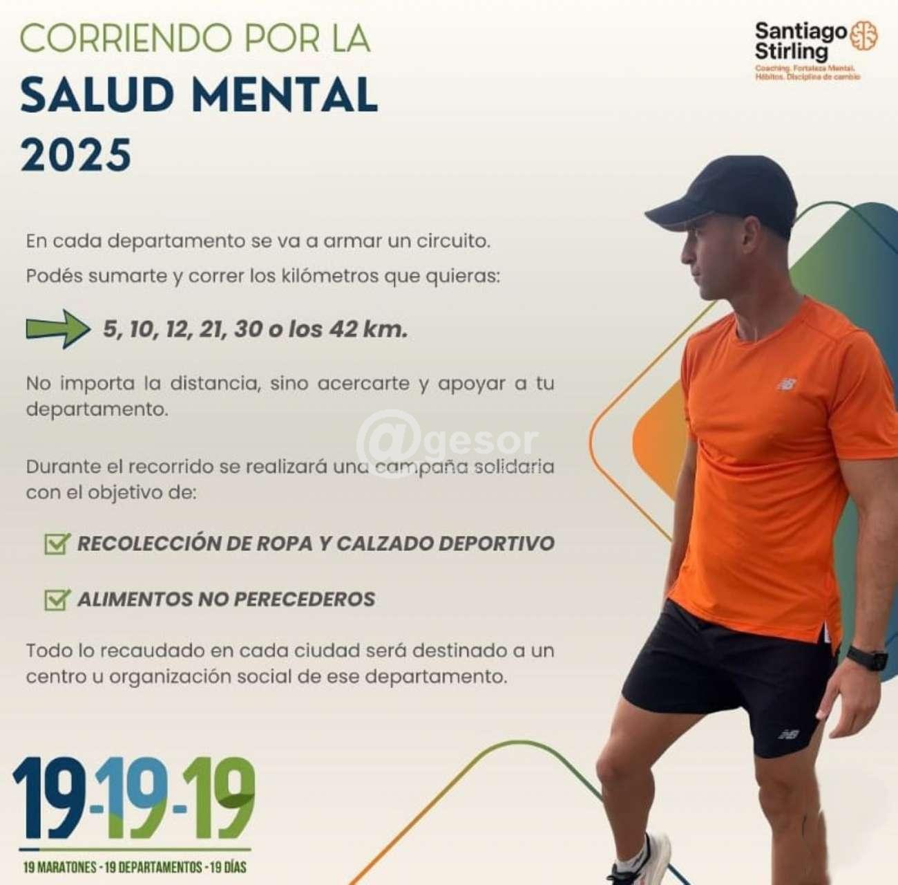 Con la organización de Santiago Stirling durante los primeros 19 días de octubre se llevarán a cabo 19 carreras en los 19 departamentos, "Por la salud mental".