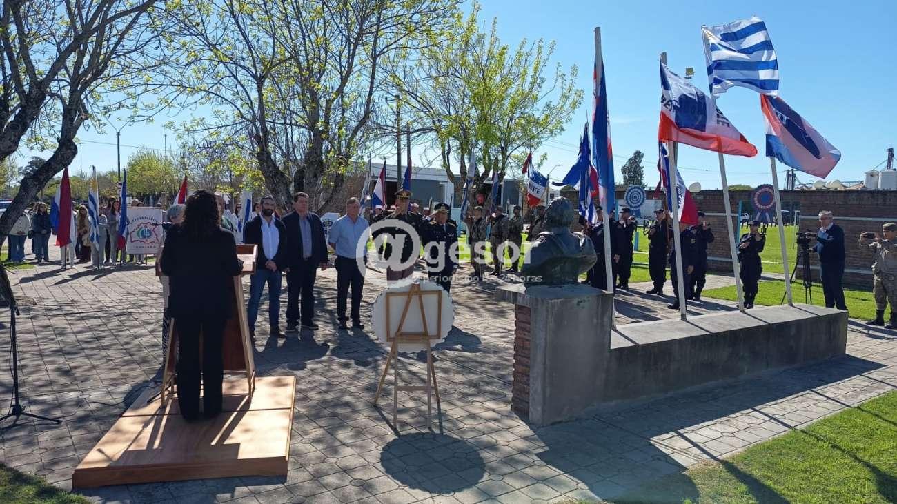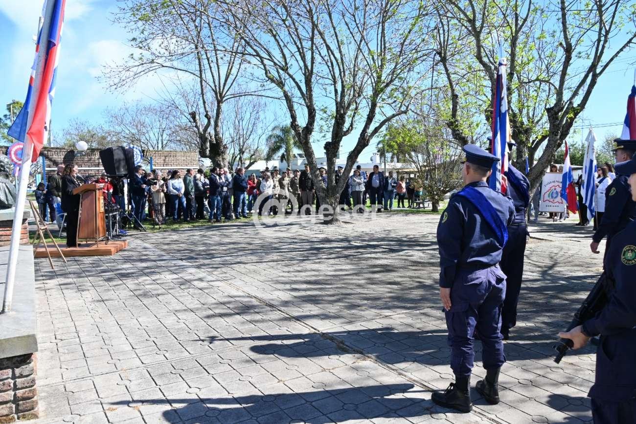 La ceremonia fue encabezada por el Intendente de Soriano, Guillermo Besozzi, y bajo la organización de la Asociación Patriótica de Soriano, tuvo lugar en la Plaza Artigas de la localidad.