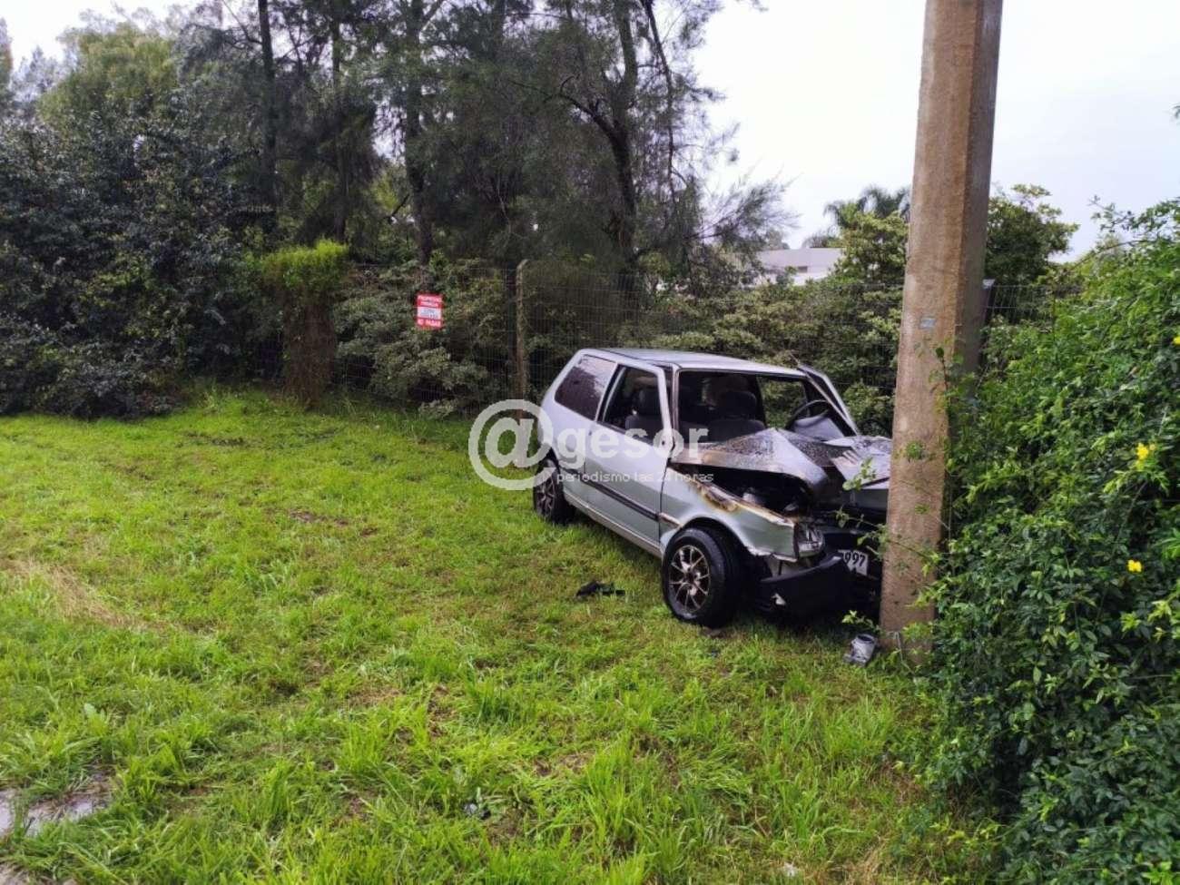 De acuerdo a lo informado, un auto marca Fiat, modelo Uno, conducido por un hombre de 31 años, circulaba por camino Elías Regules en dirección a Ruta 14 cuando, por causas que se investigan, impactó contra una columna, lo que provocó el incendio del vehículo en la zona delantera.