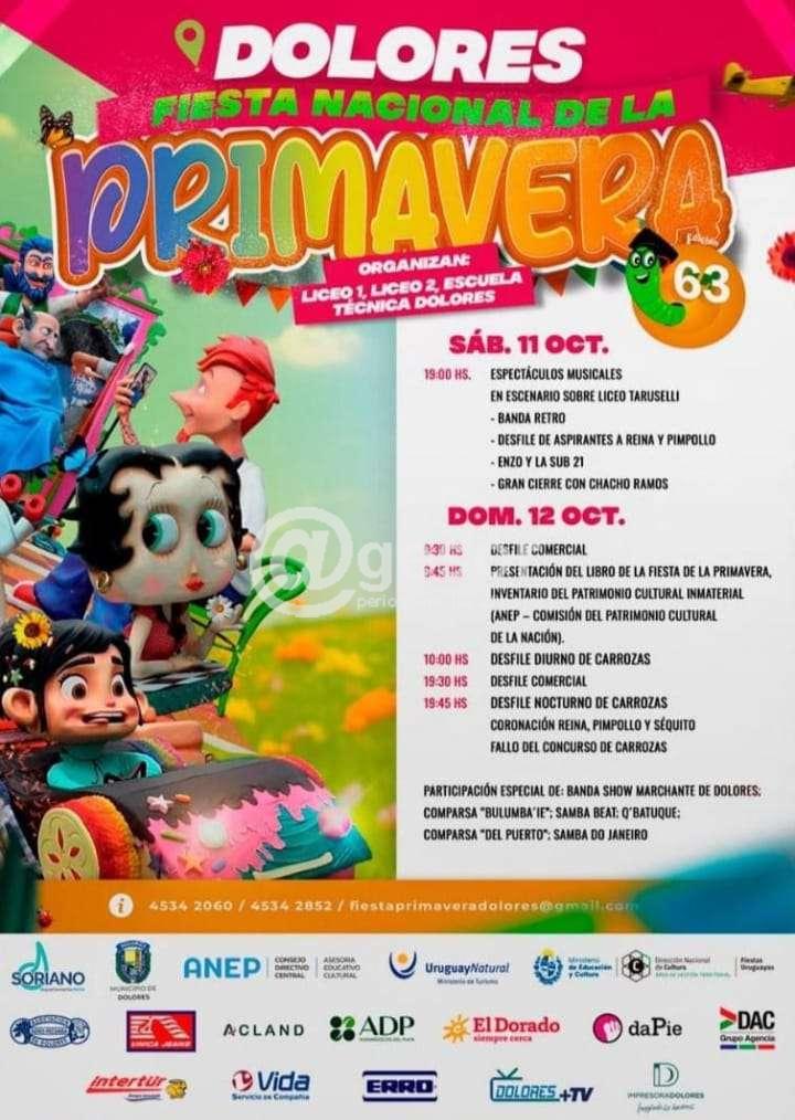 La organización de la 63ª Fiesta Nacional de la Primavera en Dolores, a cargo de los Liceos 1 Roberto Taruselli, 2 Juan B. Herrero y la Escuela Técnica de Dolores dio a conocer el afiche y la programación de este tradicional evento.