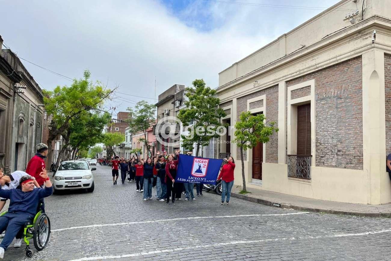 El viernes, en un clima de festejo, alegría y baile, estudiantes que pertenecen a la Escuela Técnica Superior Pedro Blanes Viale, la Escuela Técnica Washington Lockhart y el Liceo N.º 2 Luis Alberto Zanzi de Mercedes, además de público en general, recorrieron las calles de la ciudad en una caminata por el corazón.