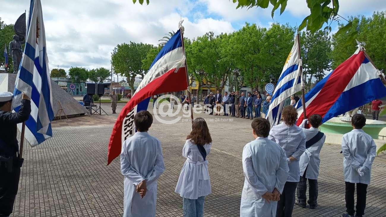 El acto protocolar comenzó con entonación del Himno Nacional uruguayo, posteriormente la parte oratoria que estuvo a cargo del profesor Santiago Zefferino. El acto contó con la presencia de autoridades departamentales, encabezada por el intendente Guillermo Besozzi, autoridades militares, policiales y de prefectura.