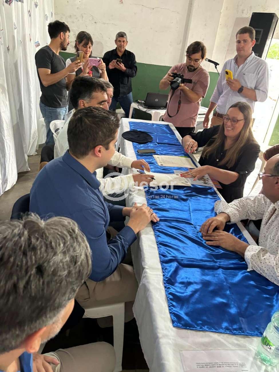 El Intendente de Soriano, Guillermo Besozzi, participó este viernes en la ceremonia de firma de 38 escrituras colectivas de viviendas de MEVIR en Egaña.