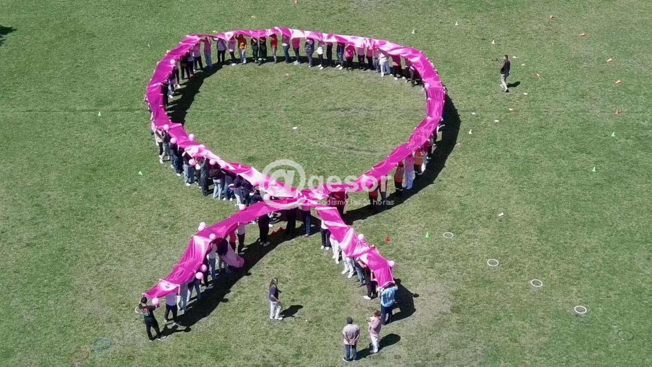 Durante la jornada, los participantes conformaron una gran figura que representó el lazo rosa, en una acción conjunta orientada a fortalecer la prevención y detección temprana del cáncer de mama, además de promover hábitos saludables y el autocuidado.