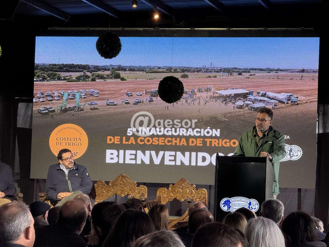 A su turno el Ministro (i) de Ganadería, Agricultura y Pesca, Matías Carámbula, que cerró la parte oratoria de la 5ª inauguración de la cosecha de trigo organizada por la Asociación Agropecuaria de Dolores, expuso sobre los planteos efectuados por los productores y del sector en general, tras saludar a las autoridades presentes hizo referencia con algunos de los que allí se encontraban "a esa cultura de una construcción acumulada de políticas de Estado, indudablemente varios de los temas que podemos hablar son parte también, continuidad, no solo del gobierno anterior, sino de gobiernos anteriores".