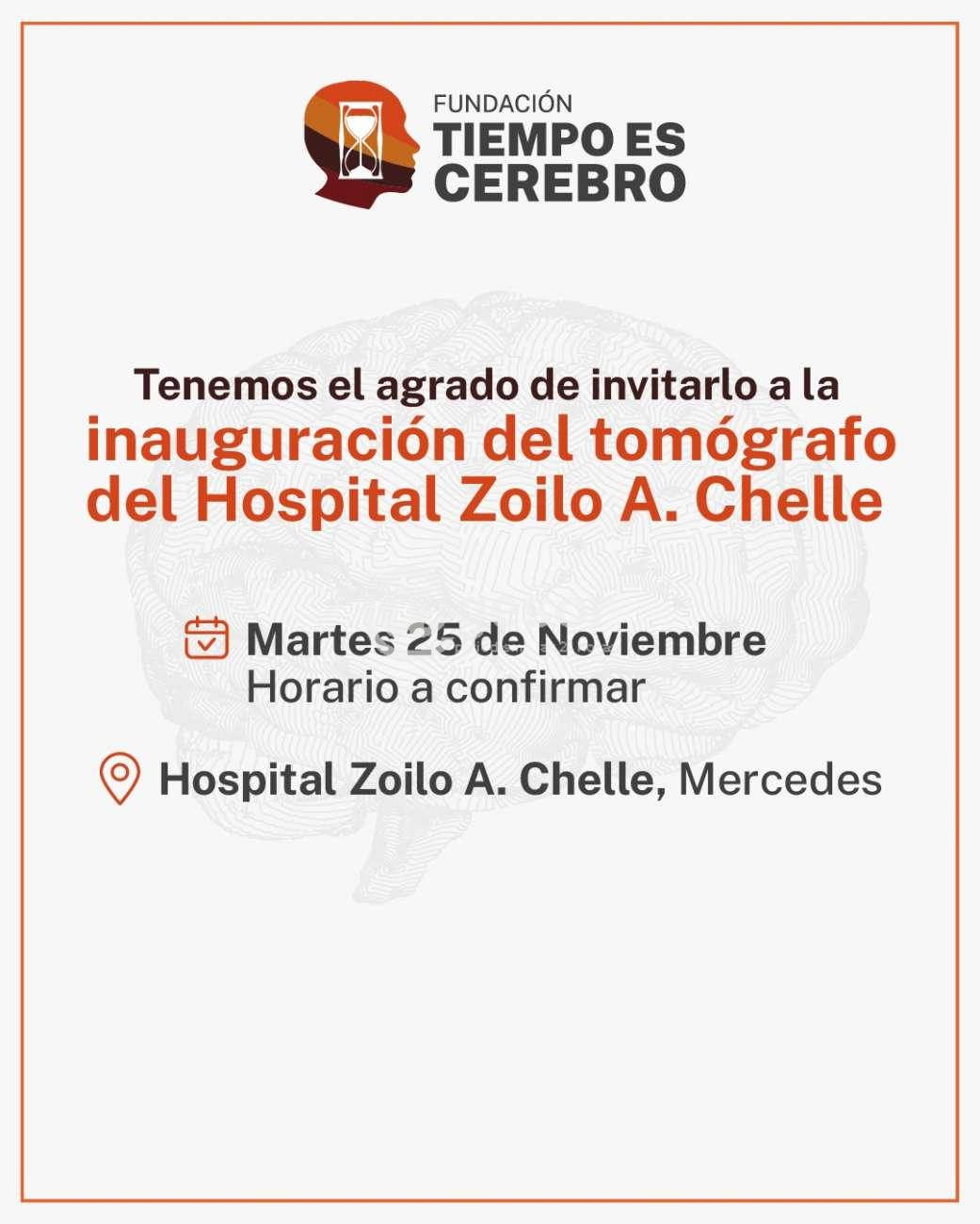 La Fundación "Tiempo es Cerebro" está invitando a la población en general a la inauguración del tomógrafo instalado en el Hospital "Zoilo A. Chelle" de Mercedes.