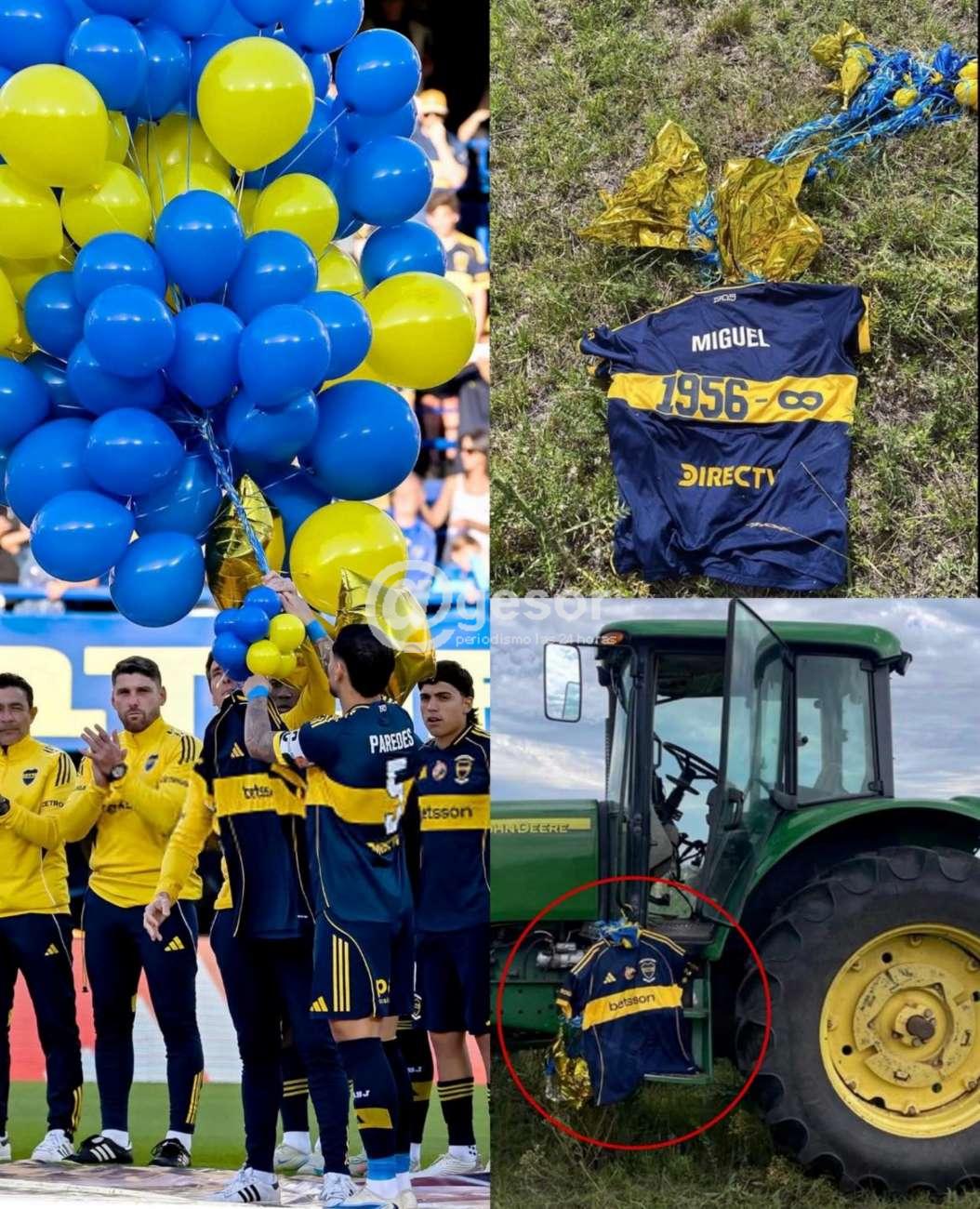 “La camiseta que Boca Juniors lanzó al cielo en homenaje a Miguel Ángel Russo cayó nada más y nada menos que en Cañada Nieto, nuestro querido pueblo.