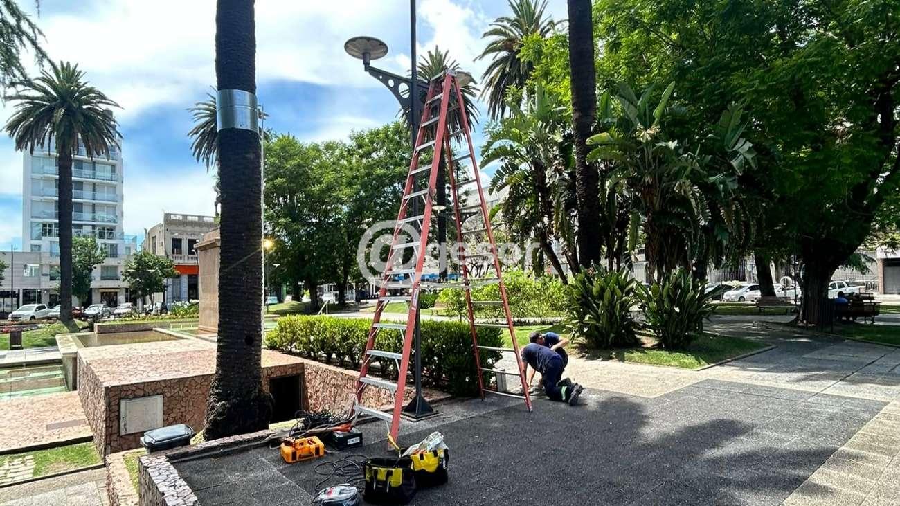 Personal de la Sección Iluminación de la Intendencia de Soriano procedió a reponer parte del cableado de la instalación eléctrica de la plaza Independencia, tramo de cables que fue hurtado en dos oportunidades.