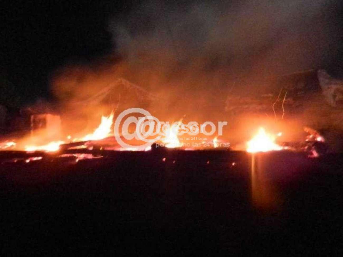 De inmediato se comisionaron móviles policiales y se dio intervención a Bomberos, constatándose al arribo un incendio de gran magnitud en una vivienda construida con materiales livianos, tales como madera, chapa y nailon, presentando múltiples focos ígneos en su interior.