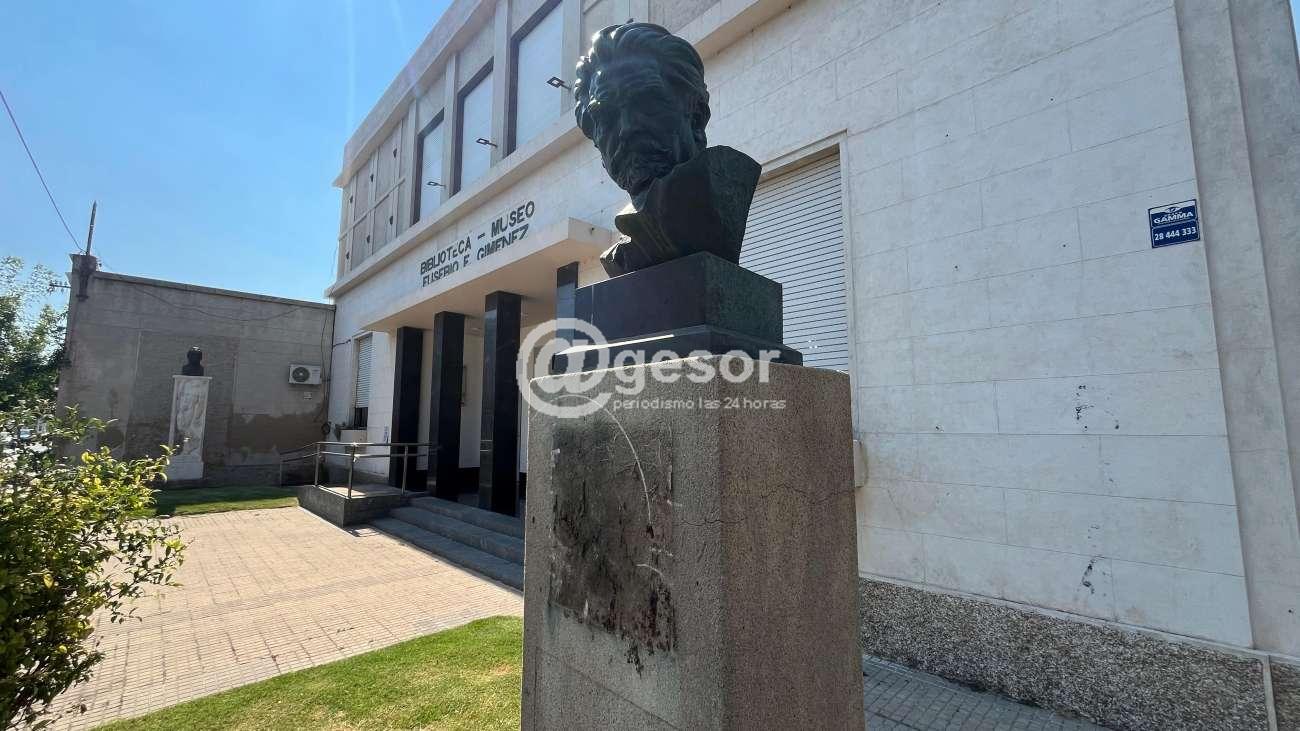 Se robaron la placa de bronce del busto a Juan Zorrilla de San Martín, ubicado en el frente de Biblioteca Giménez