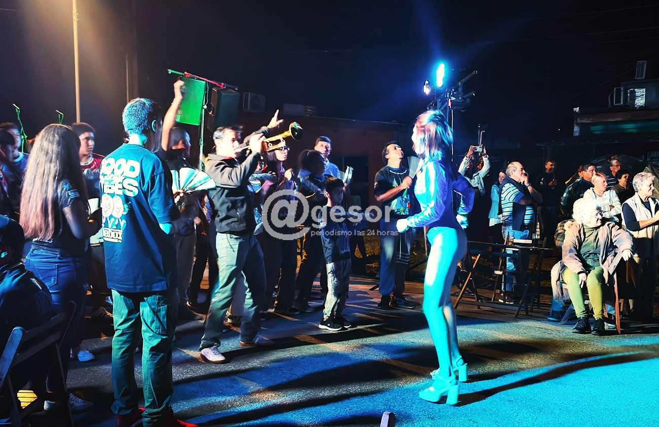 En el escenario levantado en calle Wilson Ferreira Aldunate entre 8 de Octubre y Carlos Magnone, frente a la sede del Club Atlético Ferrocarril Oeste, los presididos por Pablo López, organizaron festival de agrupaciones de Carnaval.