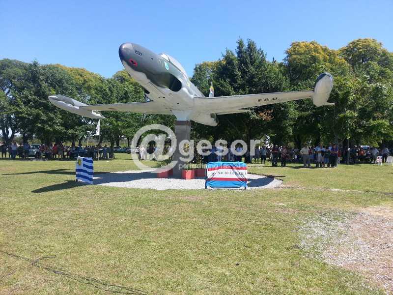 Como se había informado, en el lugar y sobre un pedestal de hormigón se colocó el avión T 33 Shooting Star que fuera donado por la Fuerza Aérea Uruguaya (FAU) en el marco del Proyecto Tango.