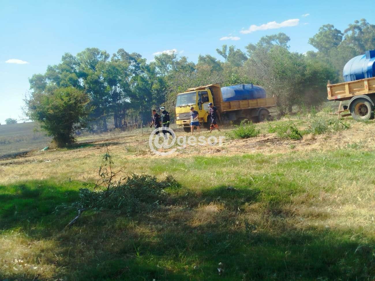 La Intendencia de Soriano aportó tres camiones cisterna de agua para apoyar las tareas de extinción de un incendio de campo registrado a pocos kilómetros de Mercedes, sobre ruta 2.