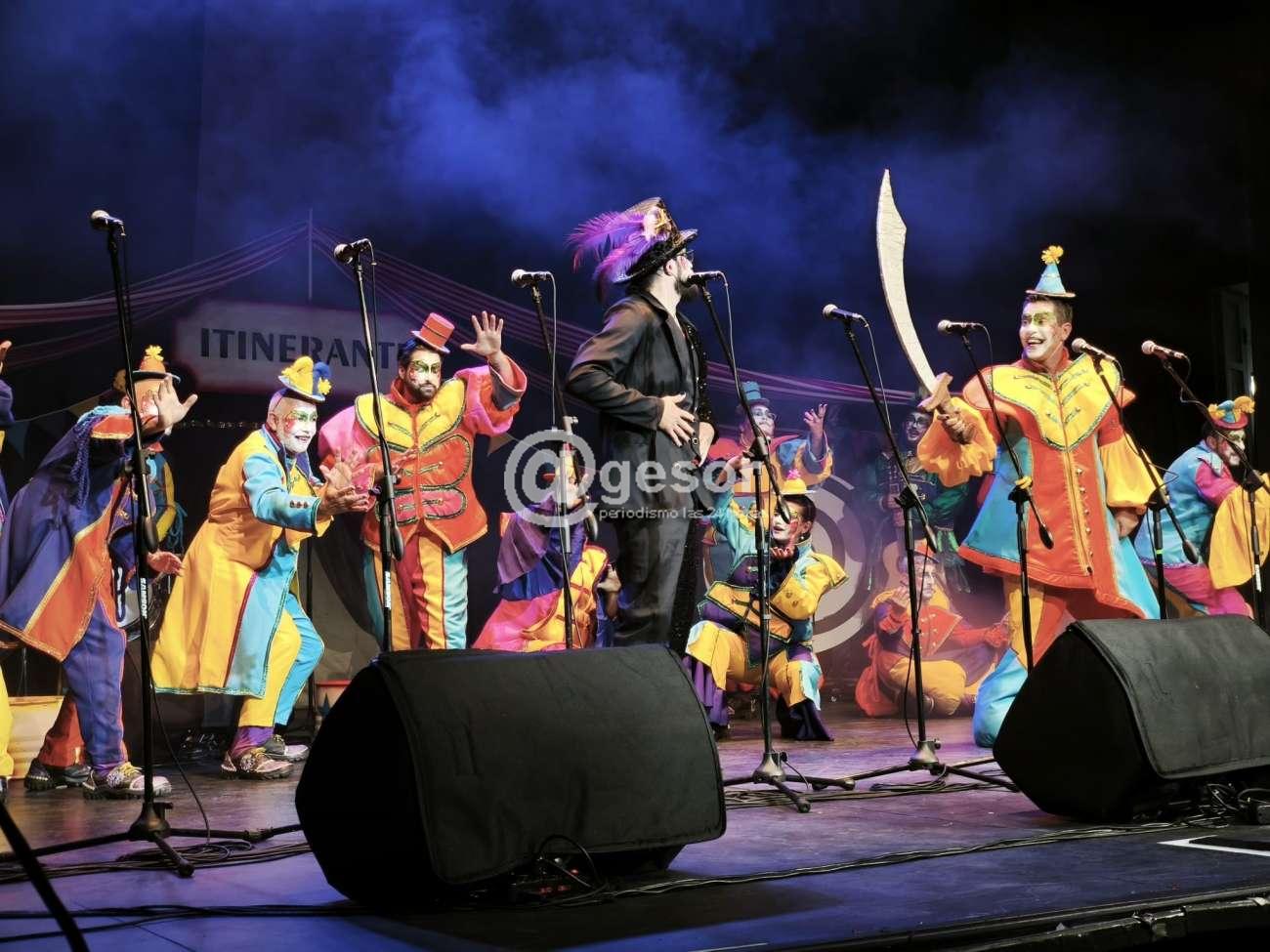 Y ya había mostrado en la parte que quedó trunca en la noche del miércoles algunos buenos atributos en su propuesta "Itinerante", a partir de ls recorridas que realiza la murga por diferentes puntos del país y los kilómetros que recorre decidieron armar un circo por lo intinerante de su actividad.