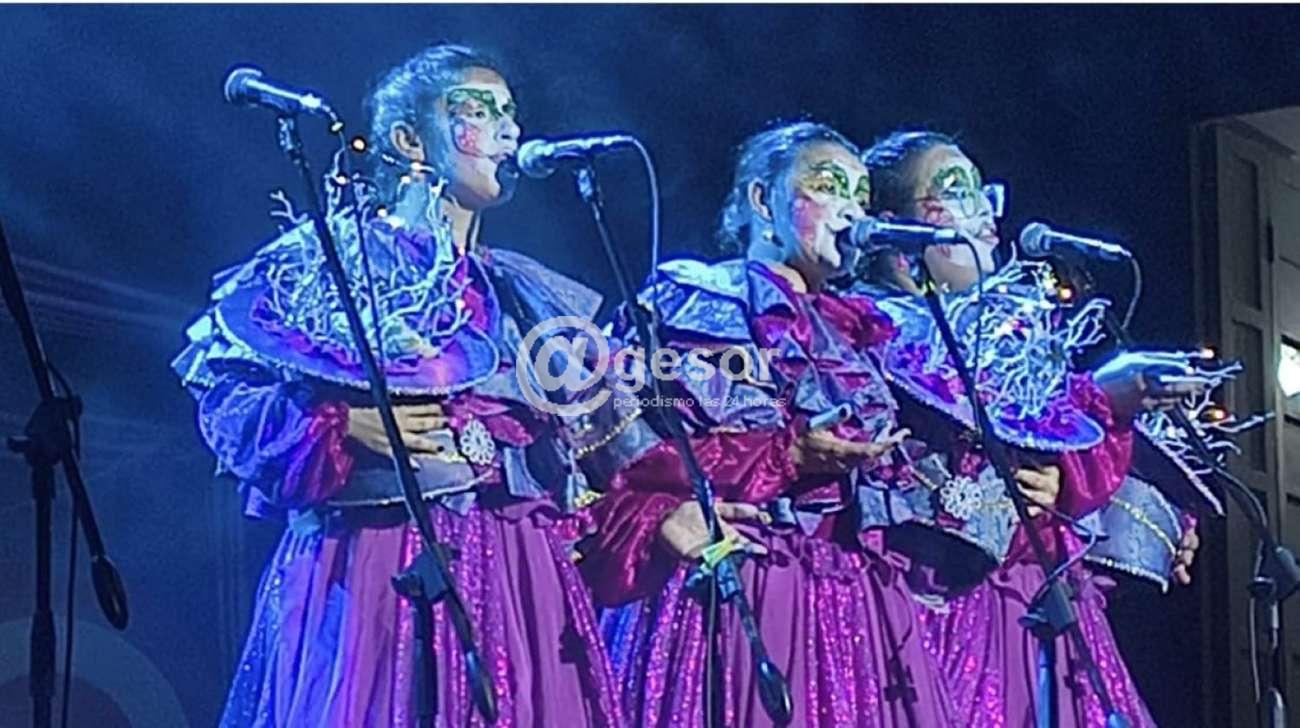 Seguidamente los presentadores José María Romero y Rossina Allegretti presentaron a la murga de Durazno, "La Desafinada" que presentó en este 2026 la propuesta "Itinerante".