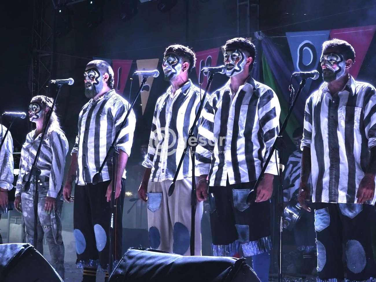 La Desmorrugada al principio pareció sentir un poco el cambio, hasta que se acomodó en el escenario y sus voces, y a partir de allí la murga se plantó firme y fue la misma que escuchamos en el teatro.