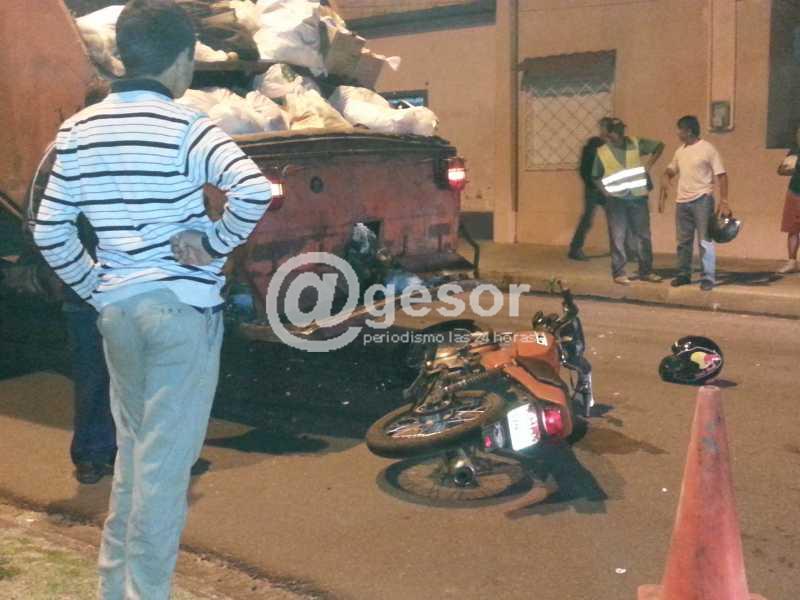 El motociclista es Claudio Haller, quien resultó con traumatismo de cráneo y pérdida de conocimiento, con un corte en el cuero cabelludo, que fue trasladado a centro asistencial para mejor atención, mientras que el camión era guiado por Alvaro Recioppe a quien la espirometría dio resultado 0°.
