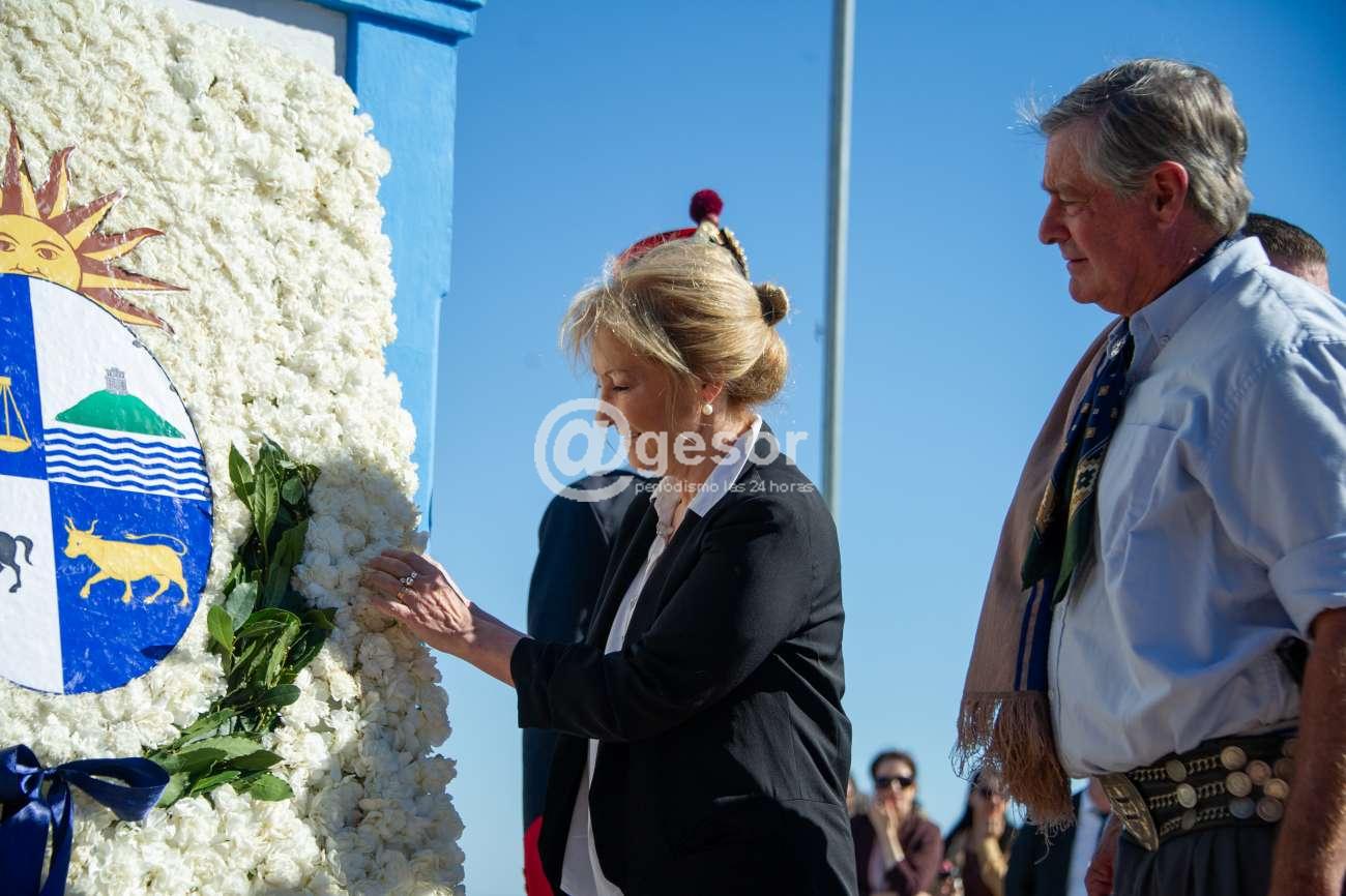Luego de la ceremonia protocolar, la presidenta en ejercicio, junto con las autoridades presentes, dejó una ofrenda floral al pie de la pirámide que recuerda la Cruzada Libertadora de 1825. Después, presenciaron la actuación de escolares de la escuelas de la Agraciada y de Nueva Palmira.