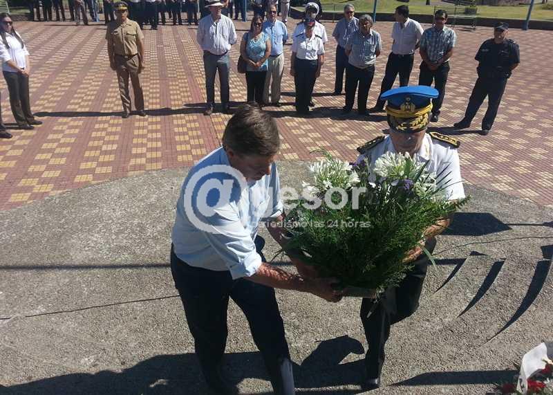 Añadió “sin embargo ha mantenido como trípode de su funcionamiento tres principios fundamentales el Honor, Honestidad y la Vocación de servir destinados exclusivamente al celoso cumplimiento de la ley". Finalmente se procedió a la colocacion de ofrendas florales al pie del monumento del monumento del Gral José Artigas.