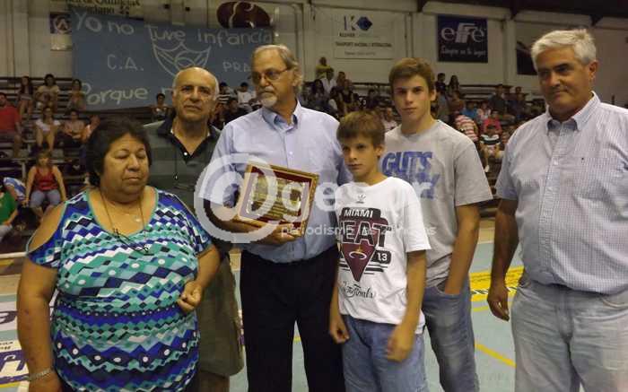 Este sábado, compañado de familiares, Luis Eduardo Koster recibió una placa entregada por Rosana Caquías, neutral de la Liga Regional de Básquetbol de Soriano. De la ceremonia participaron también dirigentes de las dos instituciones que se estaban enfrentando en el escenario praguense,el Presidente del Club de Remeros Mercedes, Agustín Bascou, y el Secretario del Club Praga, José Pedro Guastavino, como lo registran las fotografías tomadas por @gesor.